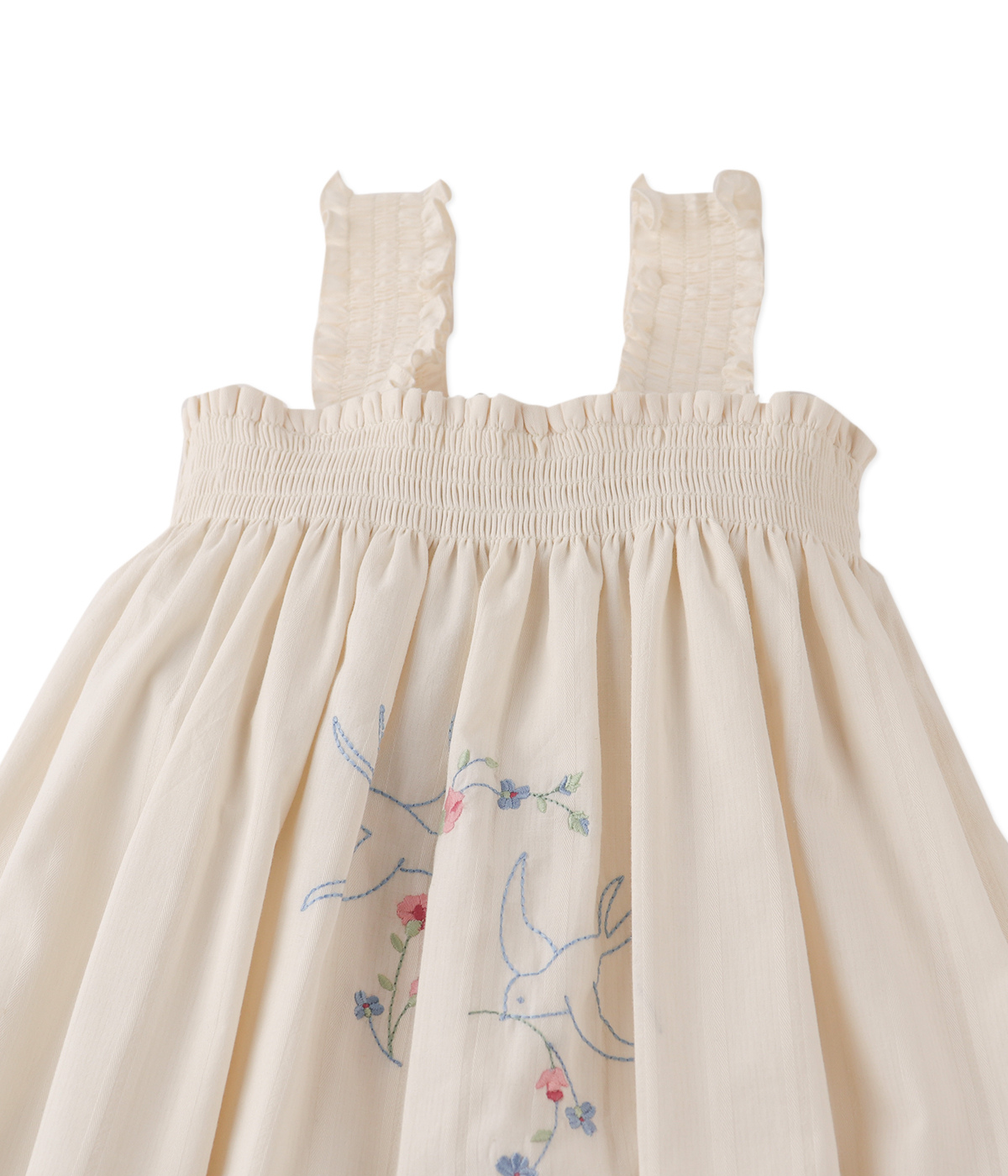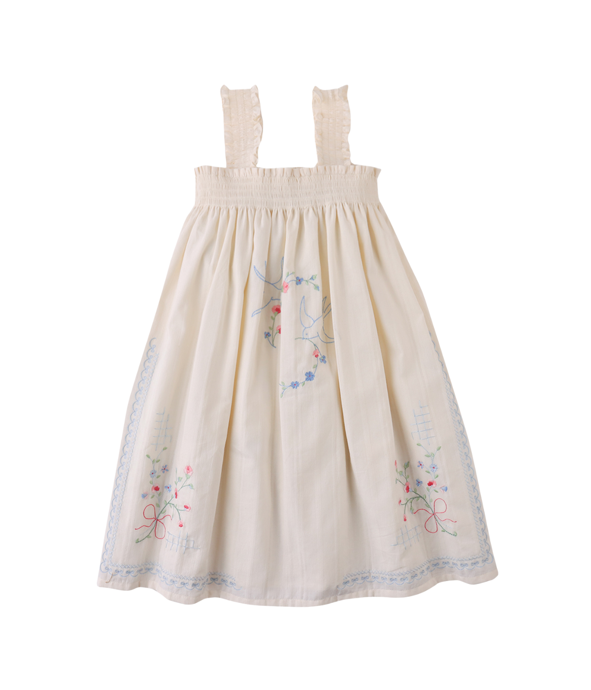 Girl Alessia Cross-Stitch Embroidered Dress - Off White