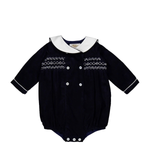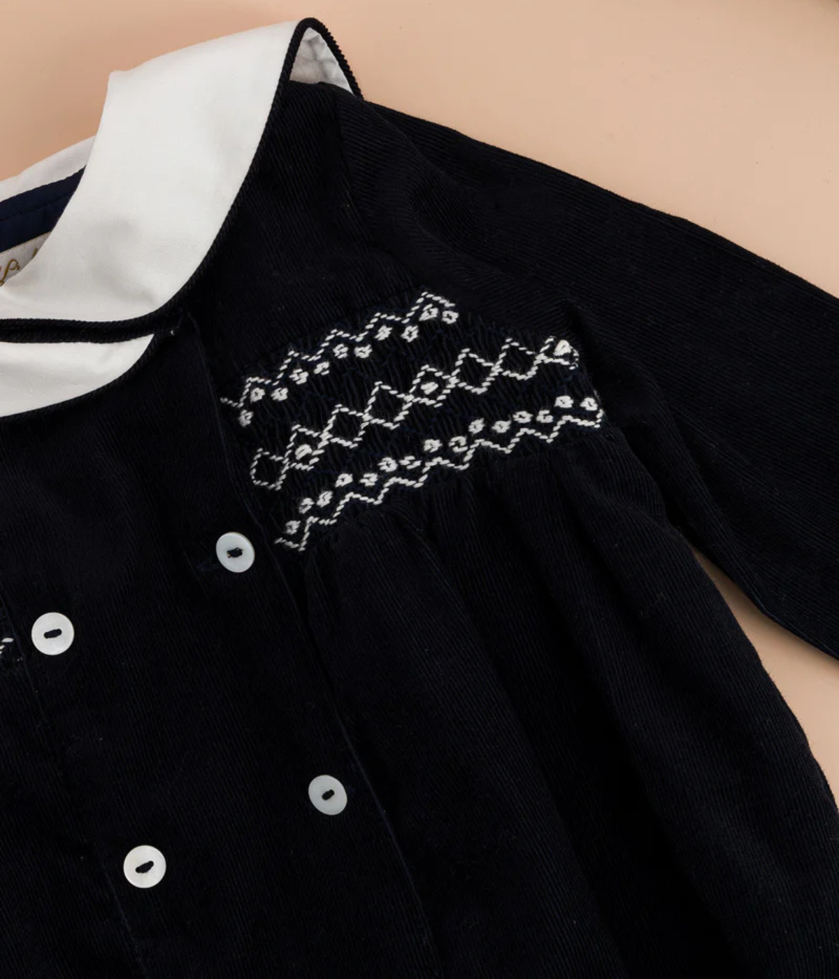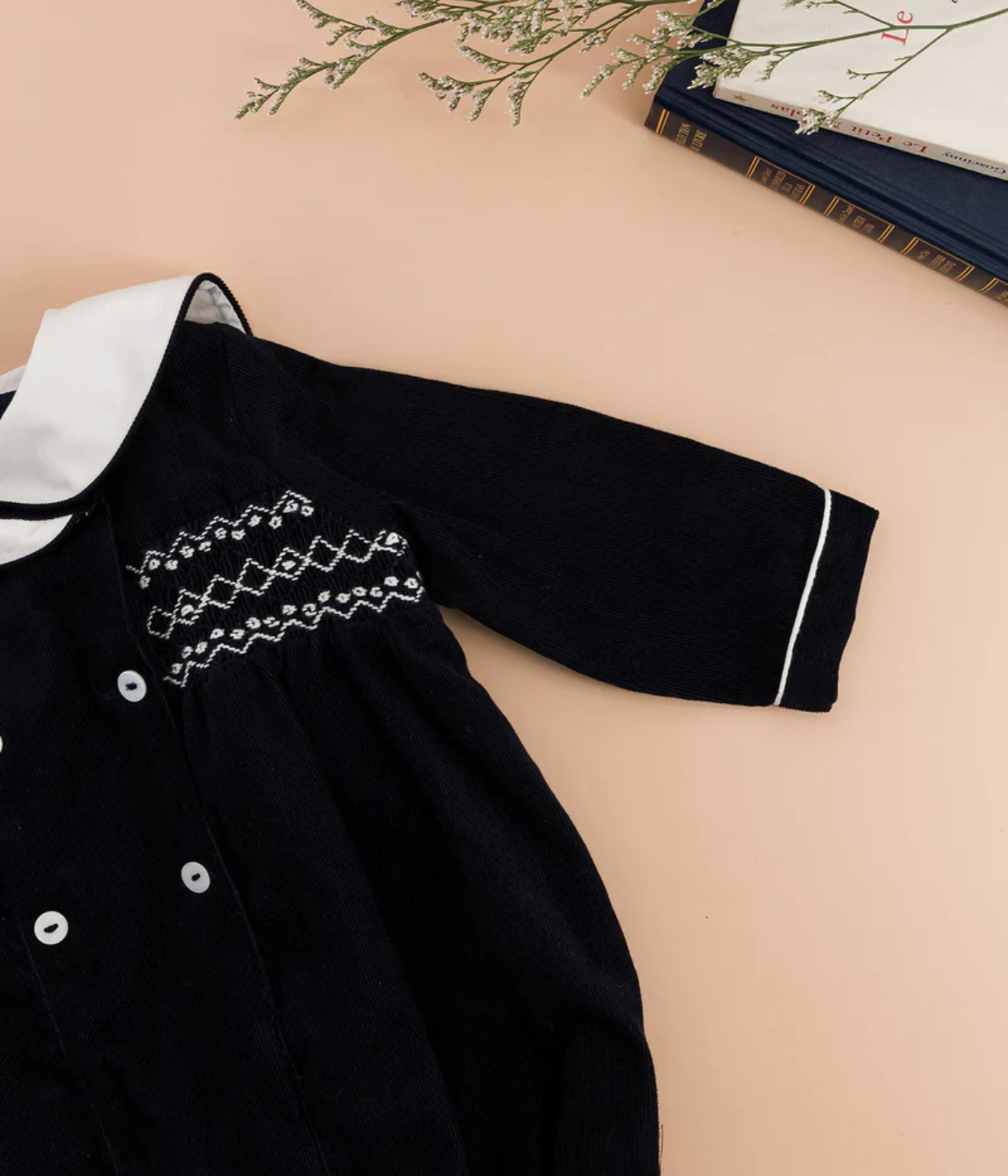 Ambroisinou, Smocked Boy Romper, in Navy Corduroy