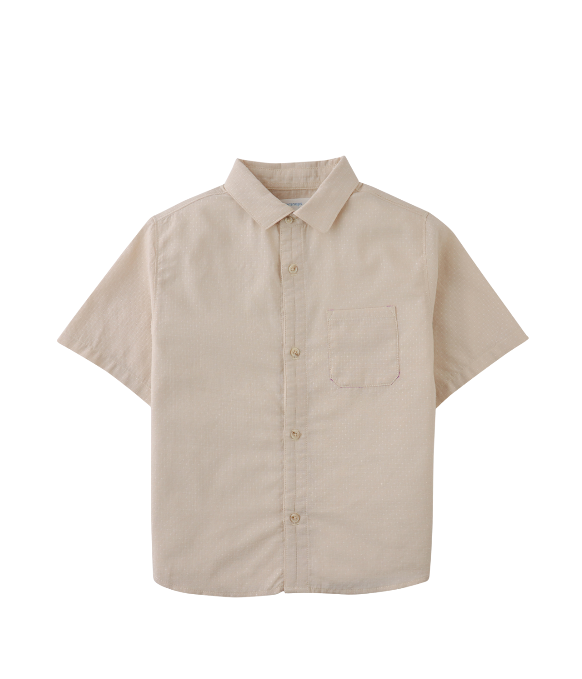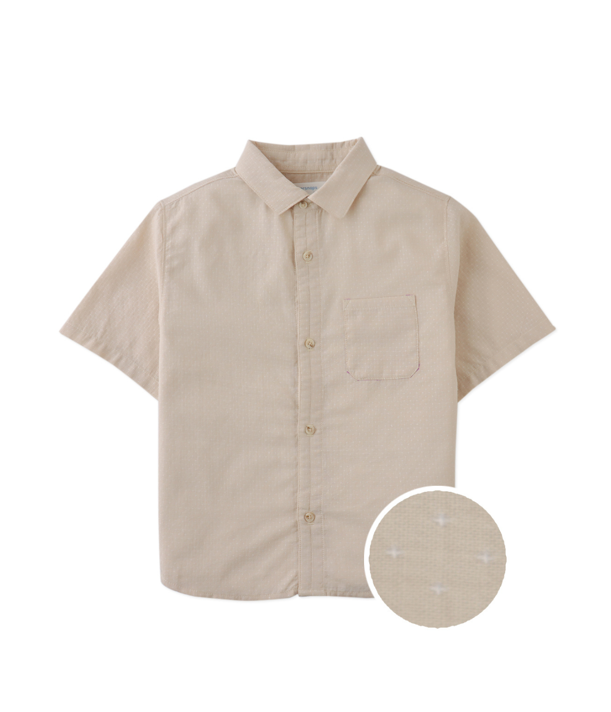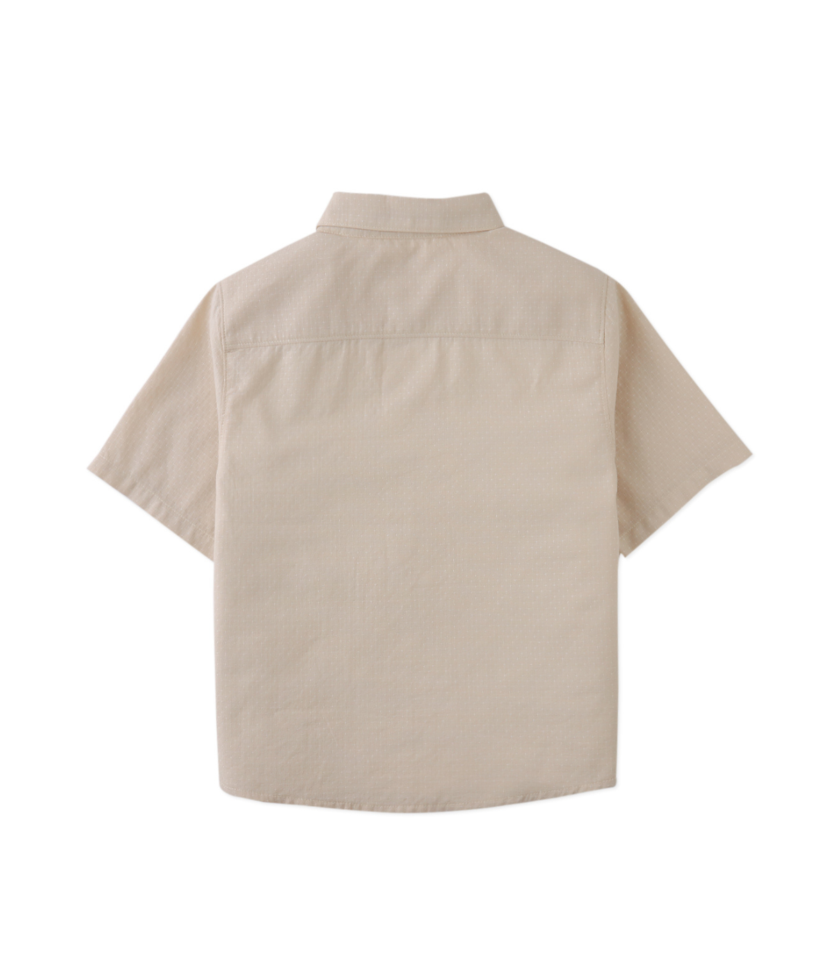 Boy Andrew Cross Dobby Shirt With Bartack Placket Details - Beige