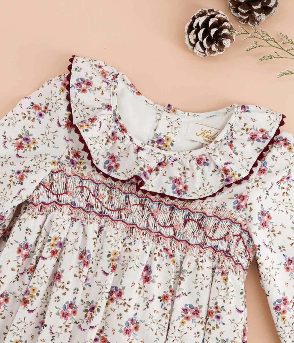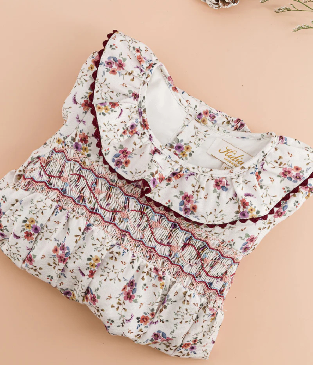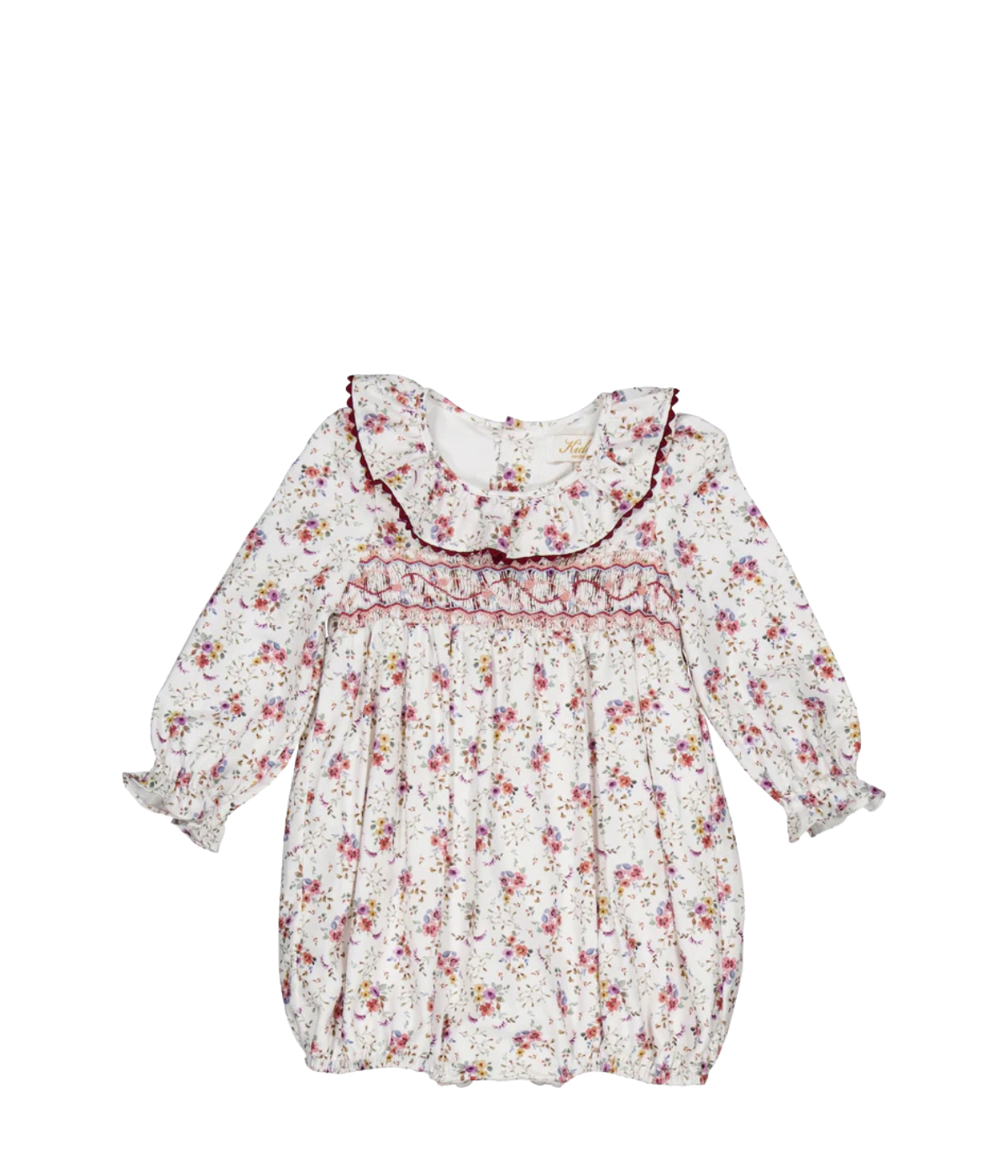 Anthéa, Smocked Girl Romper, in Winter Bouquet Print