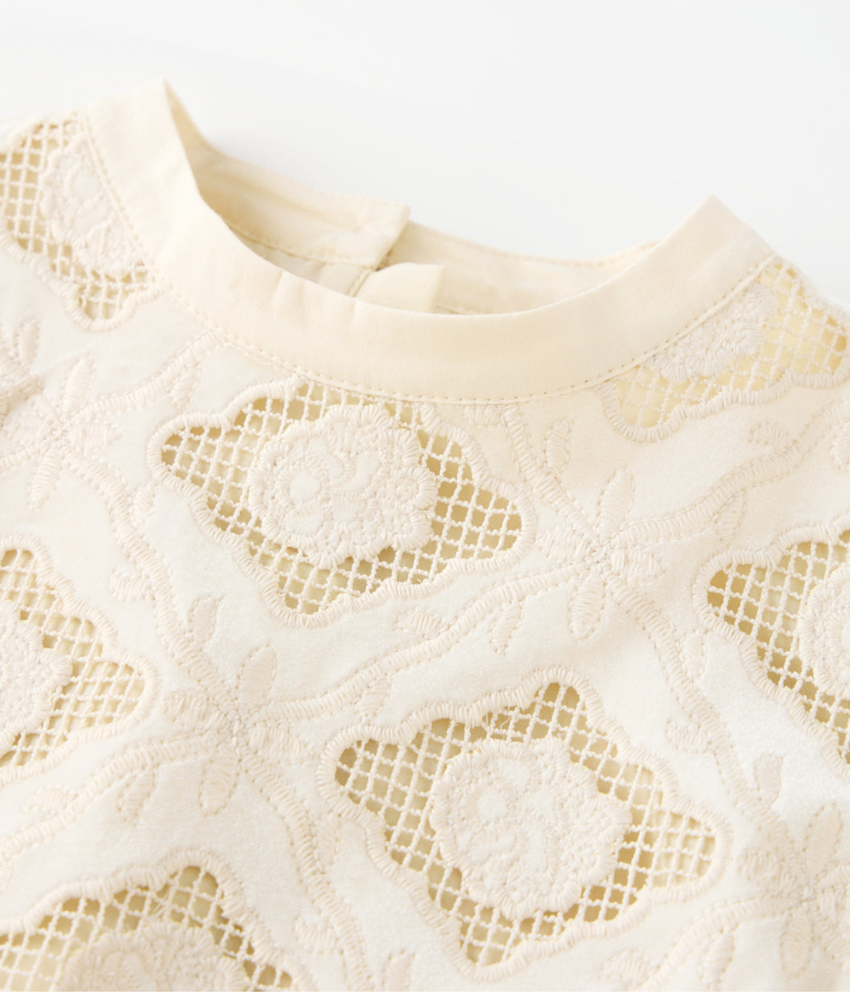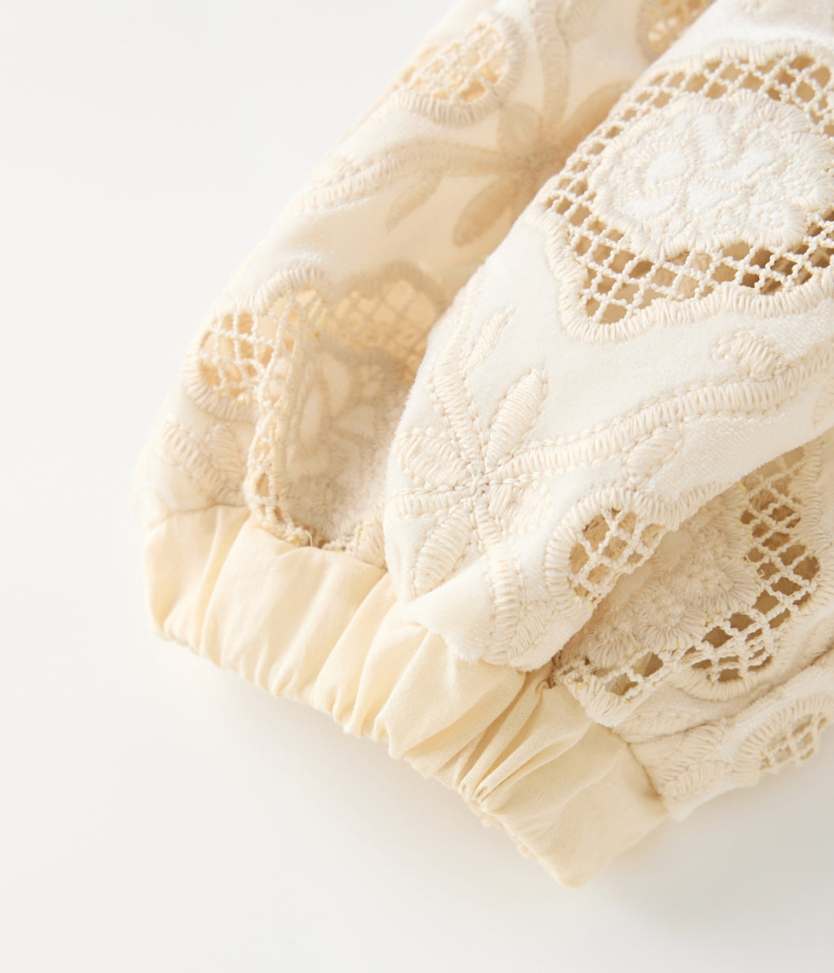 Delicate and versatile, the Ava Embroidered Top is perfect for dressing up or down. With its soft oat hue and timeless embroidery, it pairs beautifully with our matching Ava Embroidered Skirt or jeans for a polished everyday look.