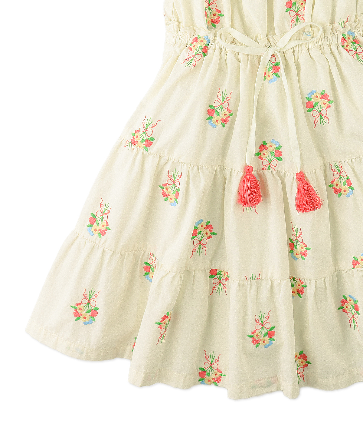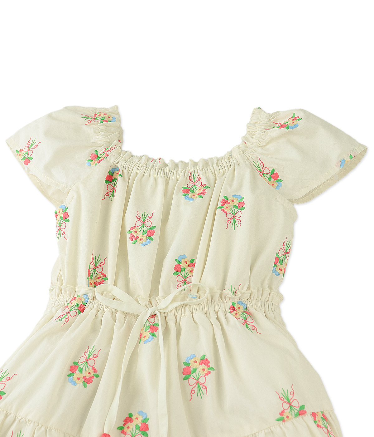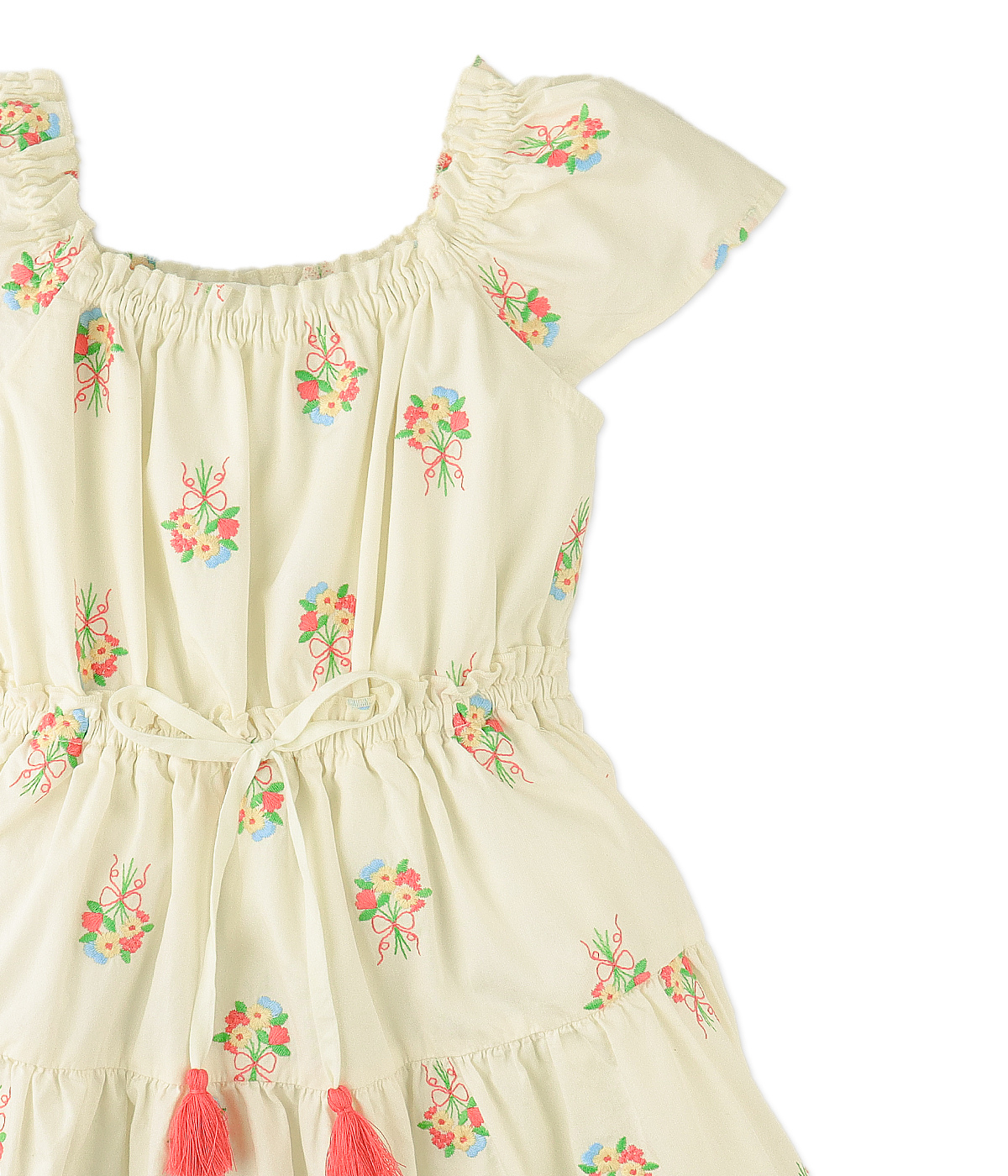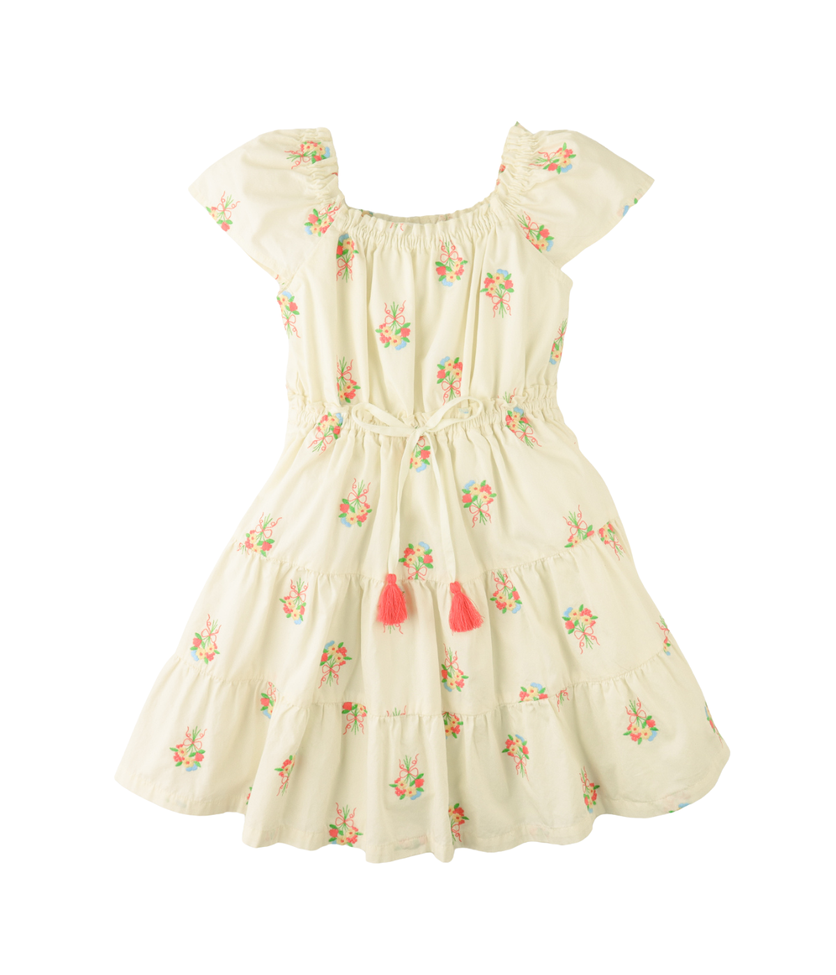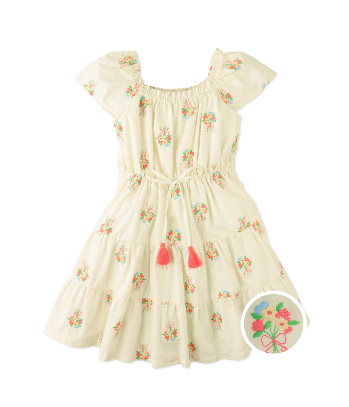 Girl Avery Embroidered Dress With Bubble Sleeves - Multicolor