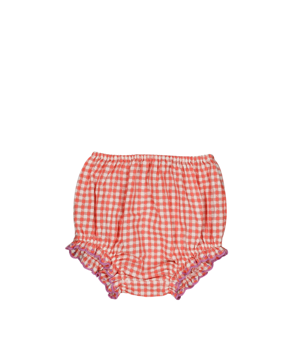 Dress your little one in the timeless charm of these gingham bloomers, featuring an exquisite embroidered scallop flounce that adds a touch of artisanal elegance to every movement. With an elasticated waist and tights for a perfect fit, this heirloom-quality set is a must-have addition to your baby’s seasonal wardrobe.