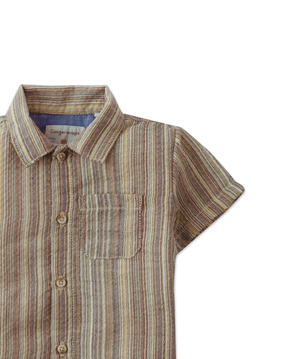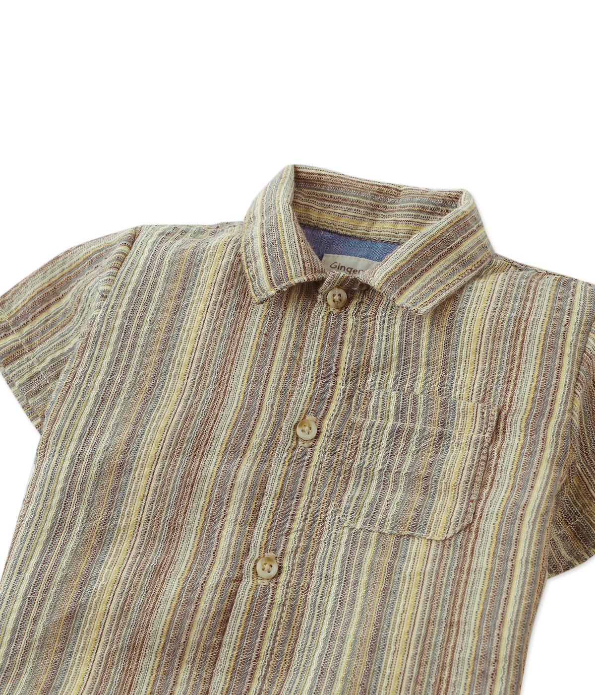 Baby Boy Billy Cotton Linen Shirt With Microstripes - Multicolor