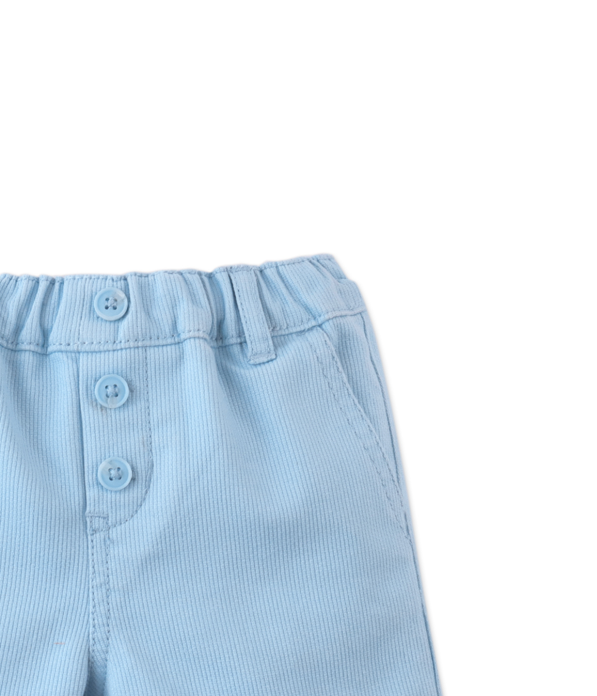 Baby Dewey Garterized Shorts With Open Seam Accent - Blue These adorable shorts bring style and comfort together in one playful package! Featuring a charming open seam accent detail, they're designed to keep your little one looking fresh and feeling great.