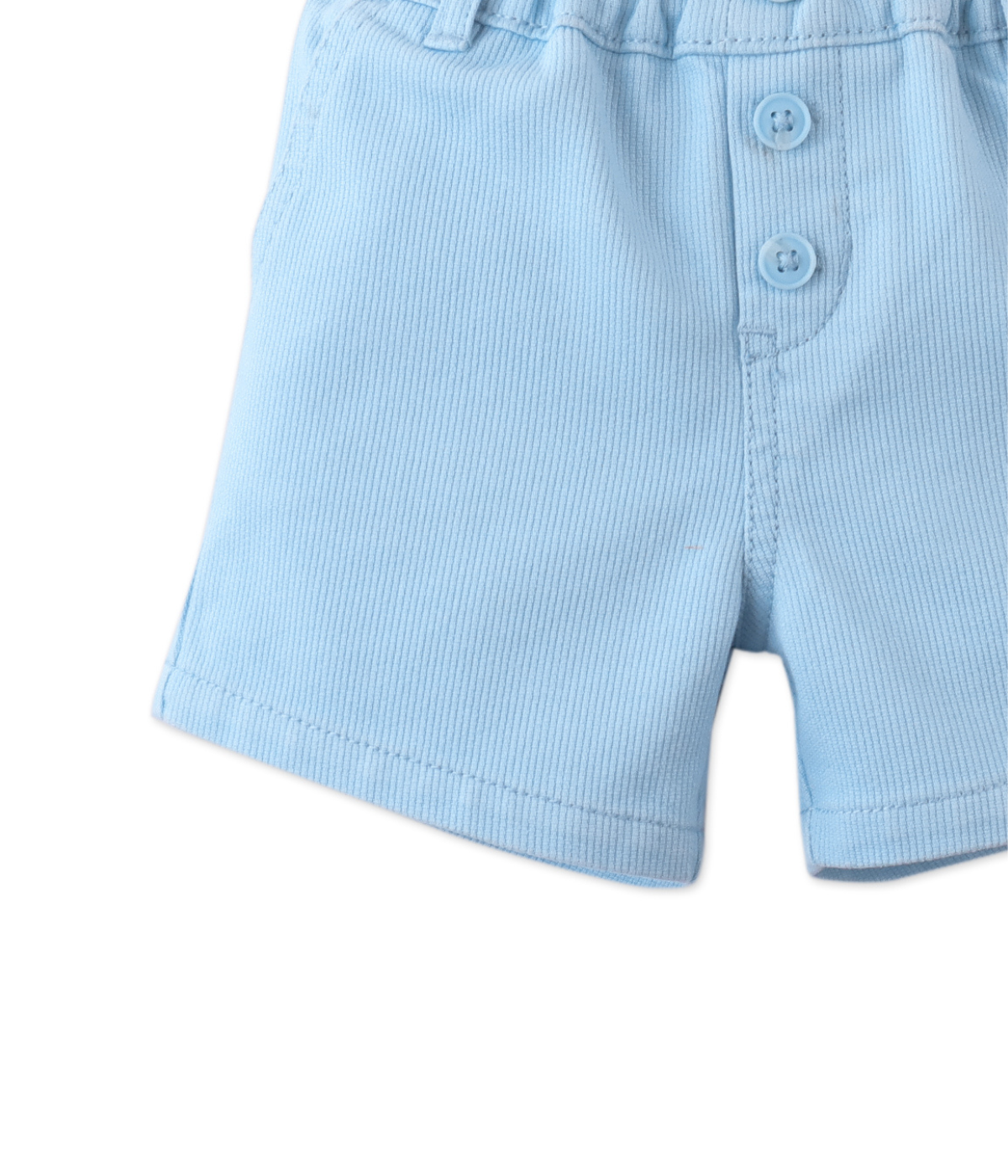 Baby Boy Dewey Garterized Shorts With Open Seam Accent Thread - Blue