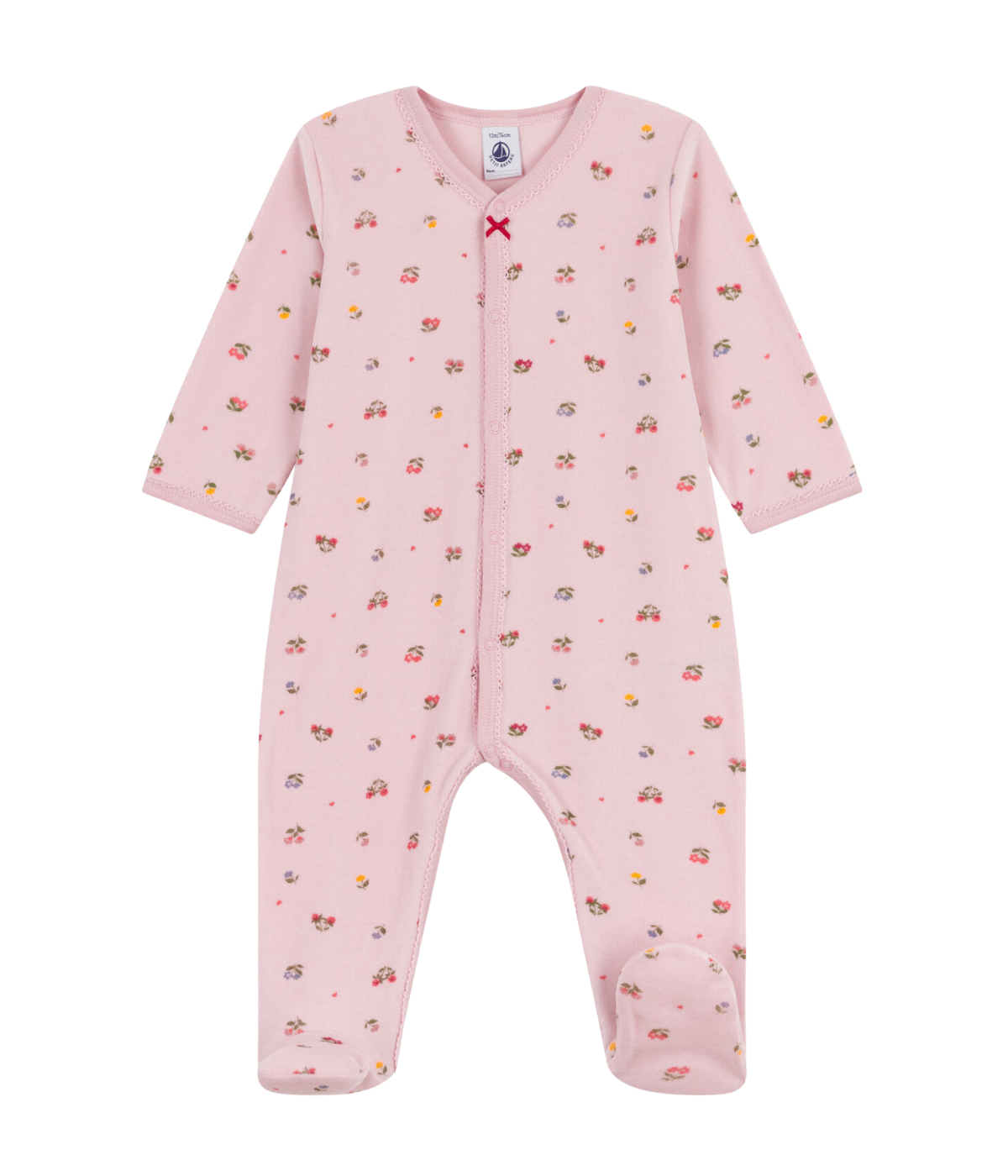 Girls' sleepsuit in terry velvet, a warm and refined material.