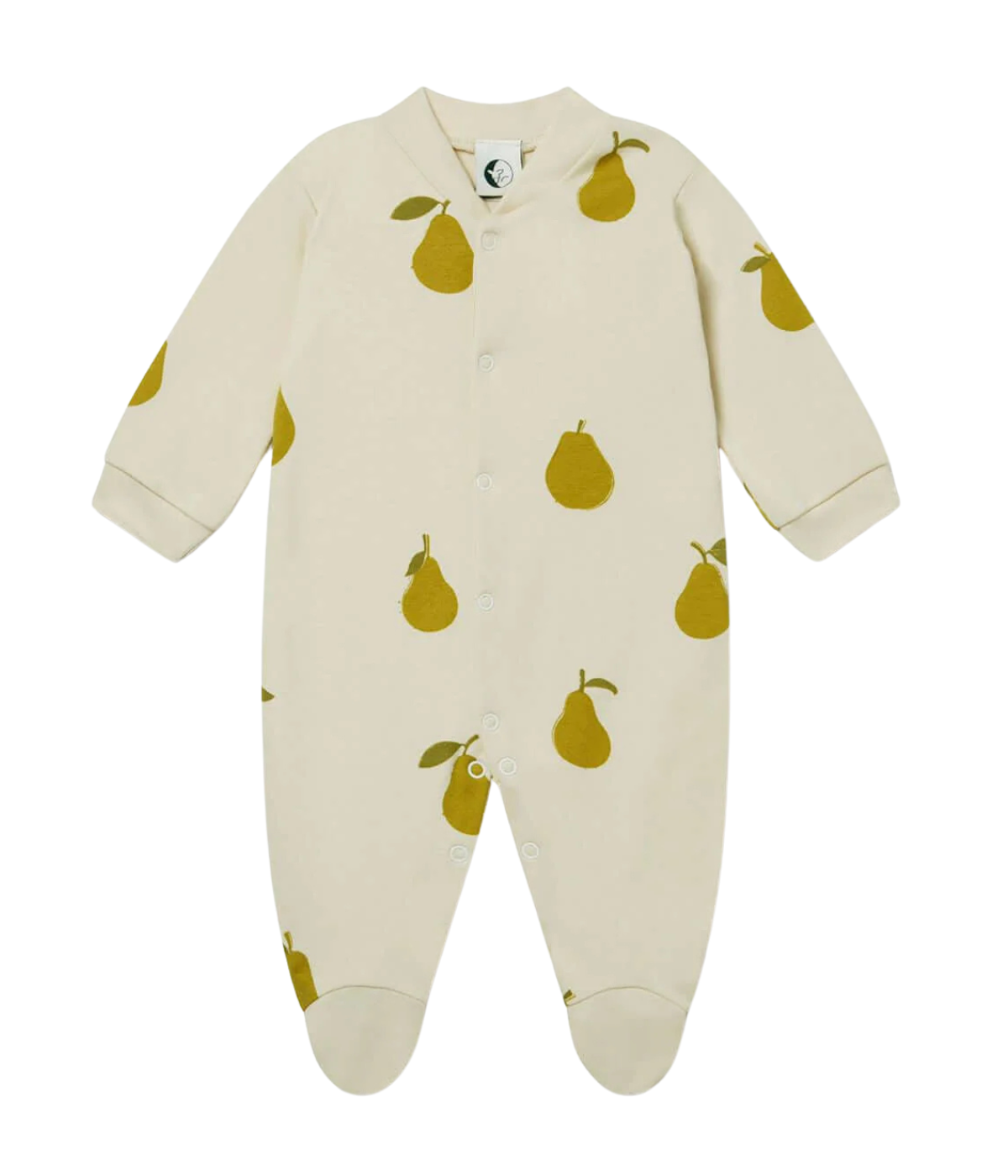 Discover Sleepy Doe's luxurious baby sleepsuit in Pear Ó crafted from 100% organic cotton and ultra-soft interlock fabric for ultimate nighttime comfort. Ethically knitted and printed in the U.K. with water-based ink, this sleepsuit supports independent suppliers and factories. For best results, wash on a gentle 30C cycle and hang to dry, avoiding tumble drying to preserve its perfect fit. Experience the elegance of British craftsmanship with every wear.
