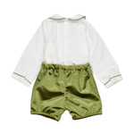 Barnabé, Baby Boy Set, With White Poplin Shirt and Olive Velvet Shorts