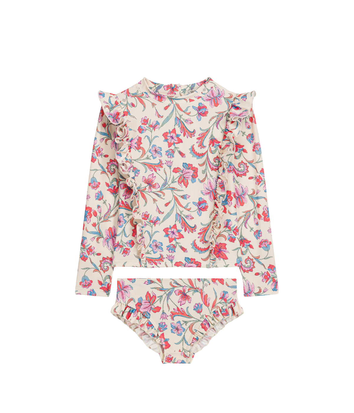 Embrace sustainable style with the Bathing Set Yanika, crafted from recycled swimsuit fabric in a delicate Cream Floral Haven pattern. This eco-friendly set offers a soft, comfortable fit perfect for beach days or poolside lounging.