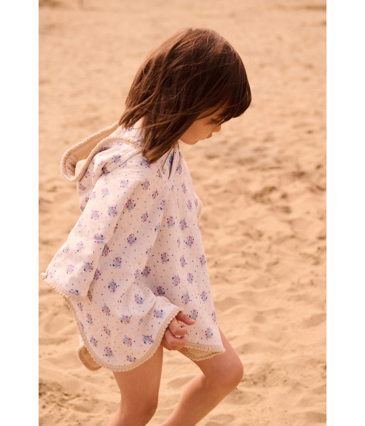 Experience effortless elegance with the Beach Cape Mael in Printed Cotton Voile, featuring the delicate Cream Flower Dunes pattern. Lightweight and breathable, this cape offers a soft drape that keeps you cool while providing stylish coverage at the beach or poolside.