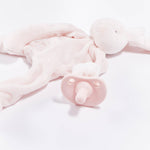 The Blossom Bunny Silly Buddy animal pacifier holder is the perfect gift for your wee one with multiple ways to soothe. Super-soft and floppy, super silly, and oh-so useful, this take-a-long pal will tie onto a baby's stroller, crib, or car seat. With a pacifier holder hand loop and fun rattling head, this is sure to be a favorite security item of Baby and Mom and Dad alike!