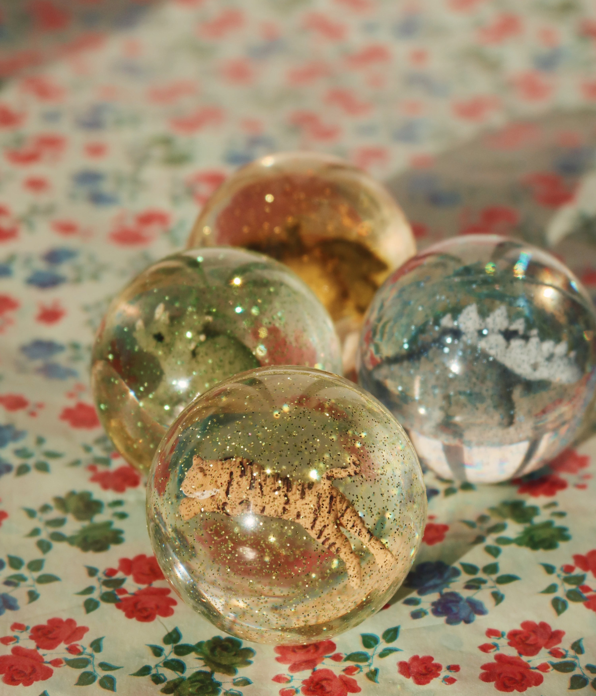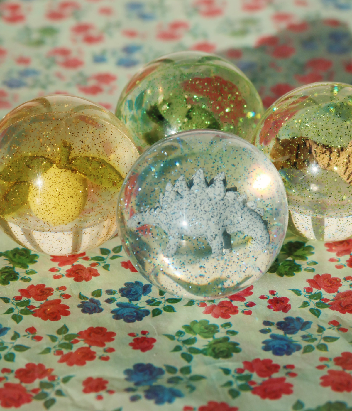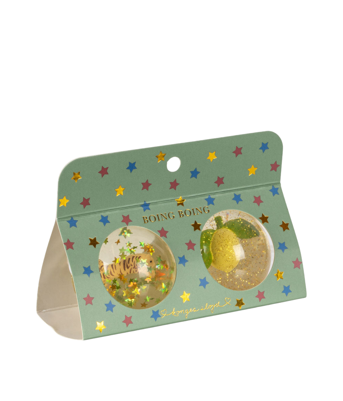 Transparent bouncing balls with 3D Konges Sløjd signature figures and glitter inside. Made for hours of fun and play.