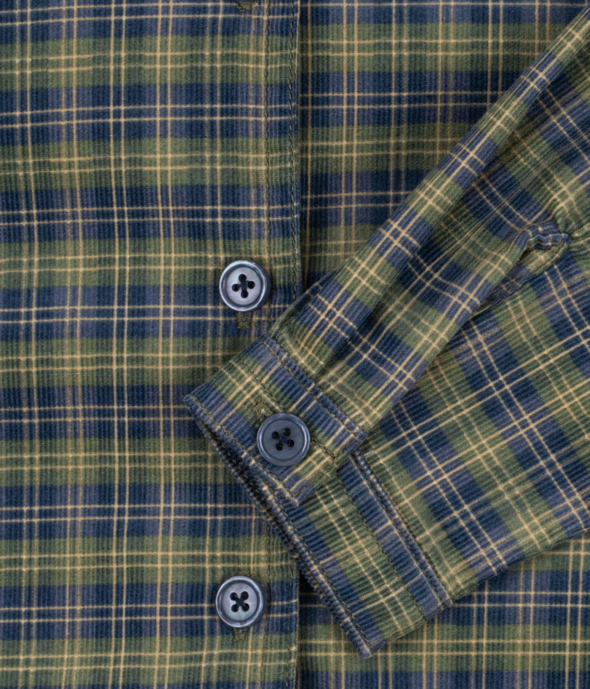 Soft shirt made in a tactile corduroy fabric. Designed with a regular collar, slim button cuffs, and front button opening.