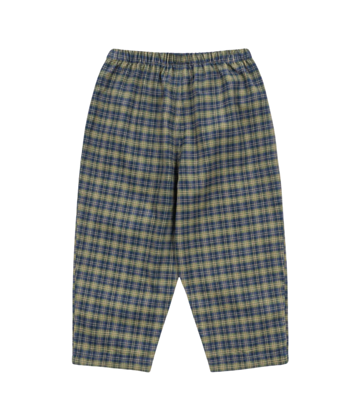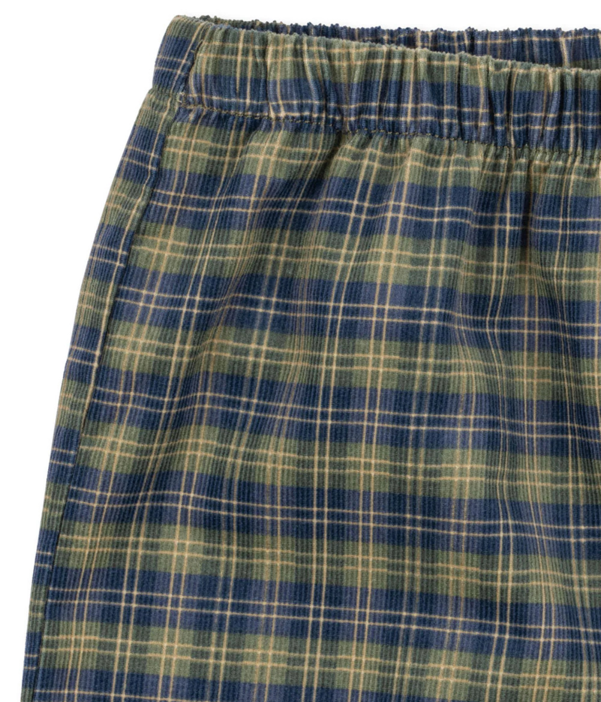 Soft pants crafted in a tactile corduroy fabric. Designed with straight legs, elastic waistband, and gatherings at the ankle cuffs.
