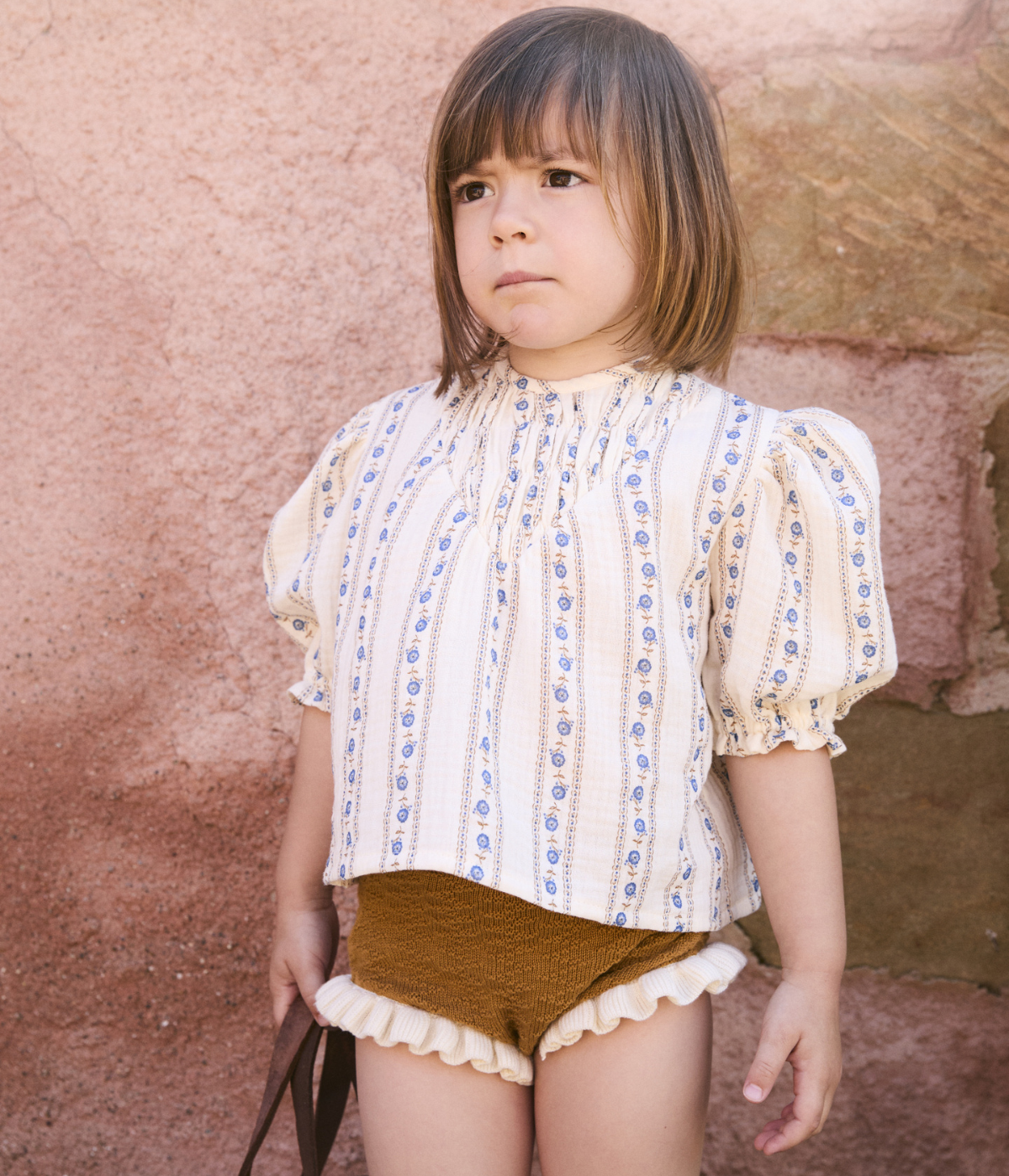 Wrap your little one in cozy comfort with this adorable caramel knit bloomer. Crafted from soft, breathable knit fabric, it's perfect for layering or wearing solo during playtime.