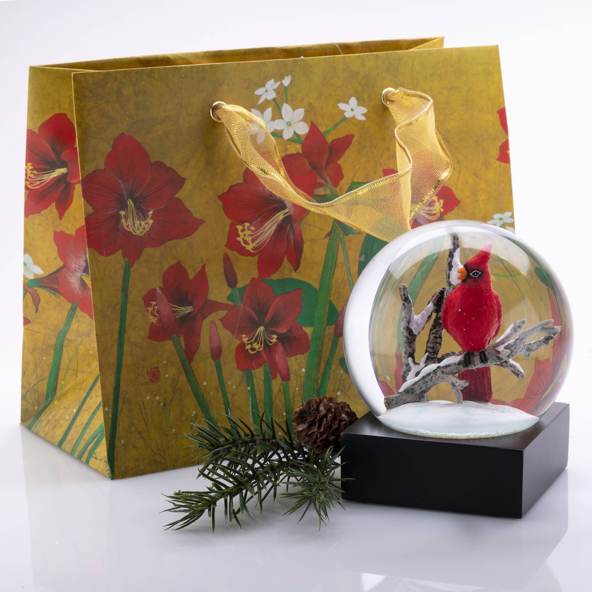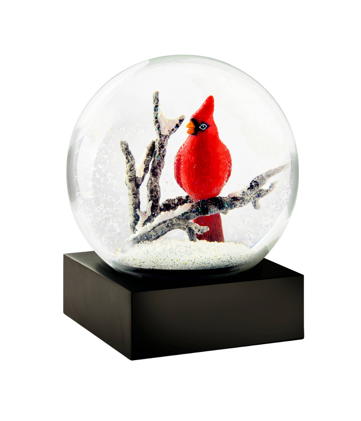 Who doesn't stop transfixed, when seeing the exquisite red of a cardinal, against the stark white snow of winter? The cardinal is often referred to in folklore as connected with the number 12. It can be seen during twelve months of the year, and it's eggs hatch in twelve days. Stories say that if a cardinal flies into your life, good luck will follow within twelve days, twelve weeks, twelve months or at twelve noon or midnight or maybe the twelve days of Christmas. Glass globe on our Iconic Square Black Base Keep your globe out of direct sunlight. Sunlight shining through the water is a magnifier and can cause a fire. Sunlight can also cause the water to discolor. Dust with a soft cloth. Glass cleaner is fine on the globe. CoolSnowGlobes are made of glass and are not toys for children.