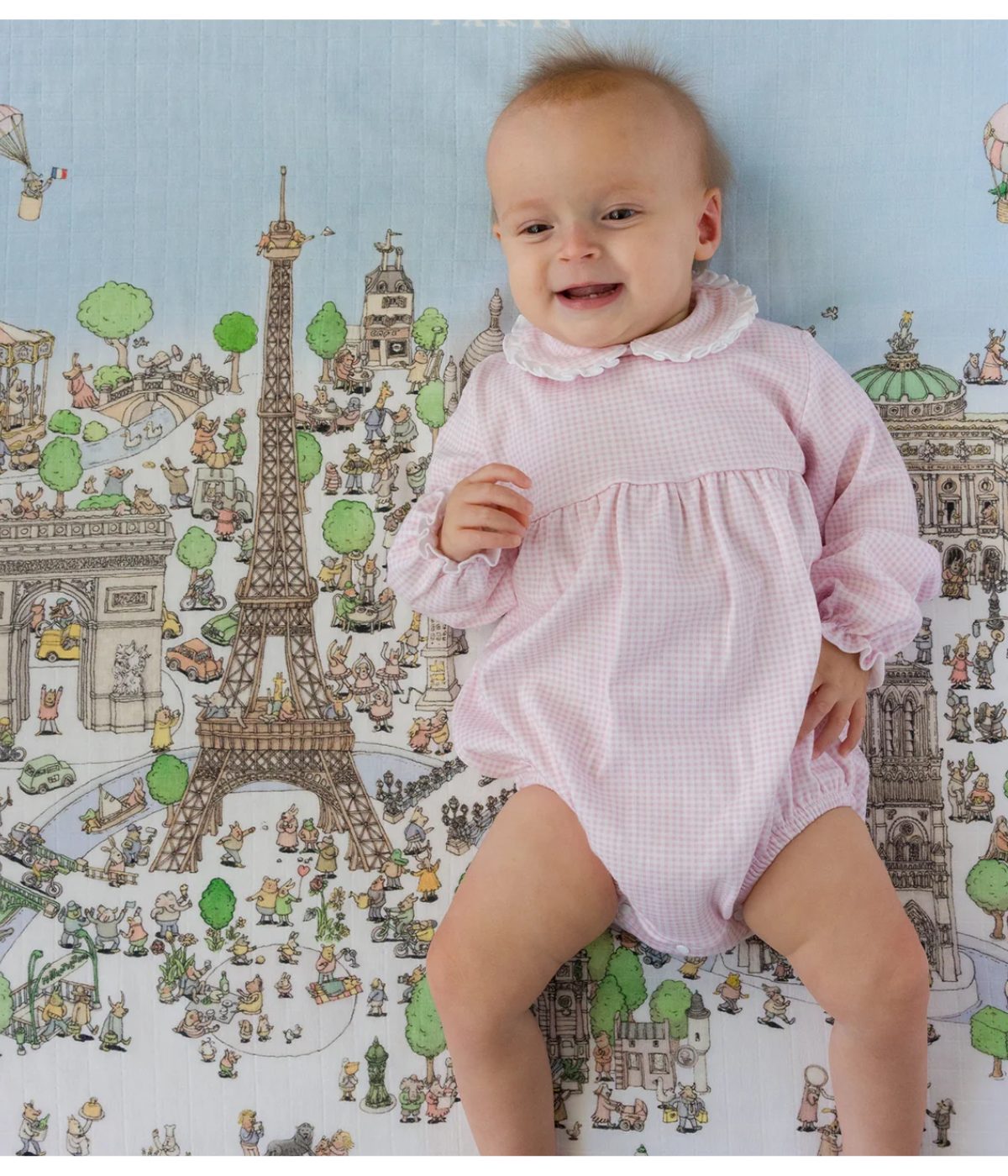 Atelier Choux carrés (light blankets or swaddles) are an everyday, elegant essential. Carrés can be used as a light blanket, as a chic stroller accessory, as a photo background, or as a tablecloth during playtime or mealtime.