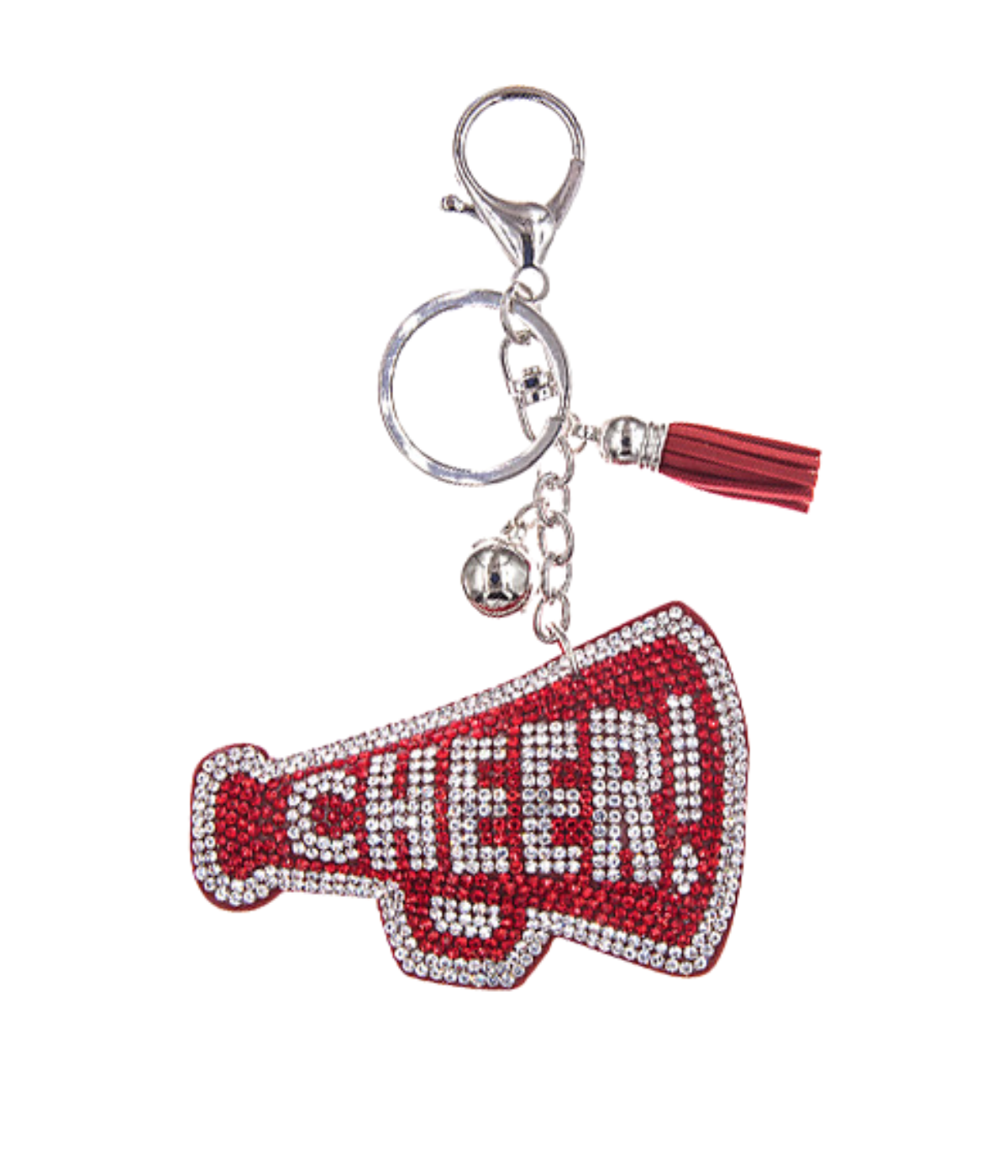 Show off your team spirit wherever you go with the Cheer Megaphone Key Chain in red and clear. This compact, lightweight accessory is perfect for holding your keys while expressing enthusiasm and support.