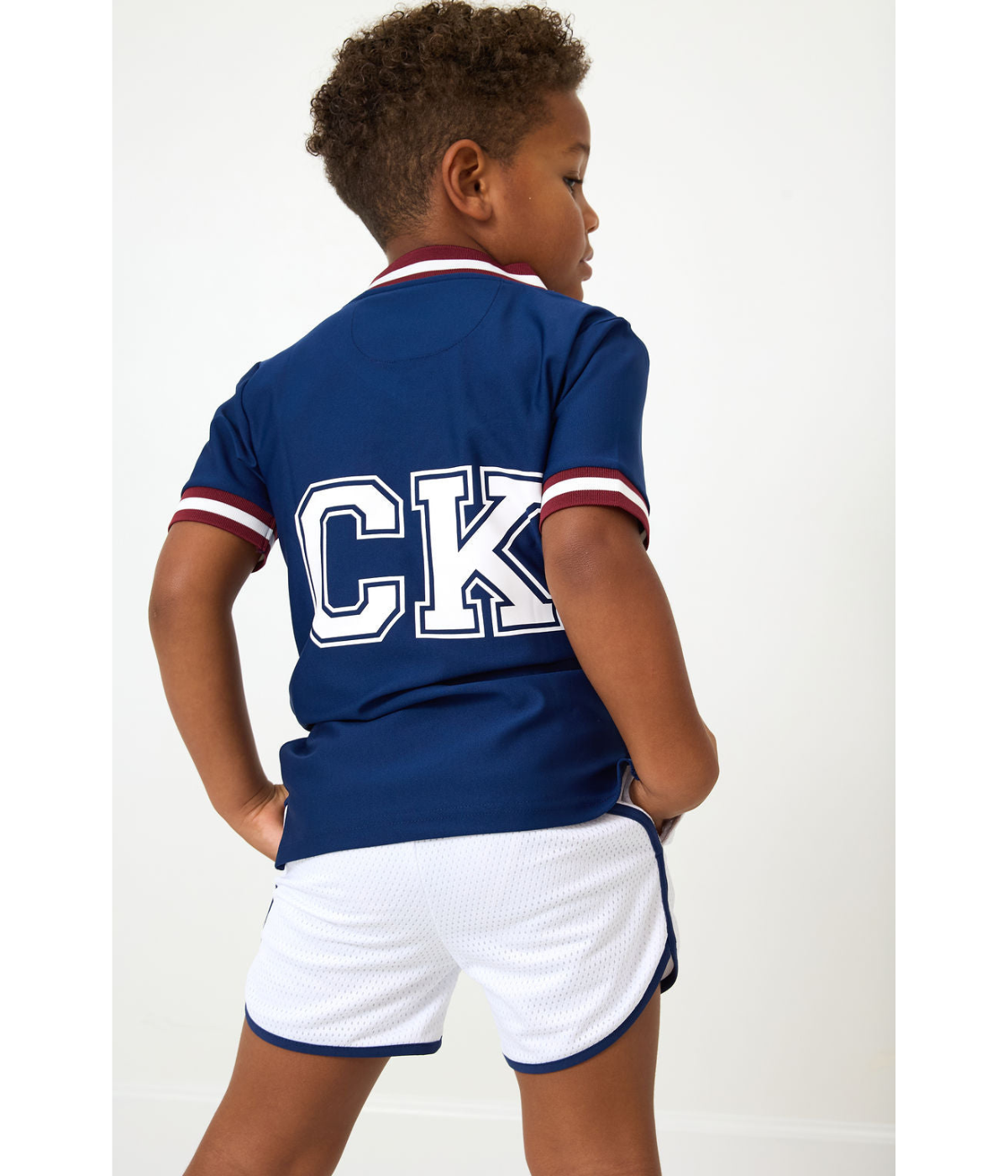 Bringing classic varsity vibes, our boys ck varsity jersey is a win on and off the court. made from a smooth, buttery performance fabric this tee features a bold v-neck with contrast trim, striped cuffs, and oversized ck lettering on the back. it blends sporty style with everyday comfort. made from soft, breathable performance fabric, it’s perfect for school, practice, or weekend play.