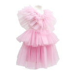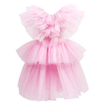- Mid-long length dress with soft, sumptuous gathered tiered tulle layers.