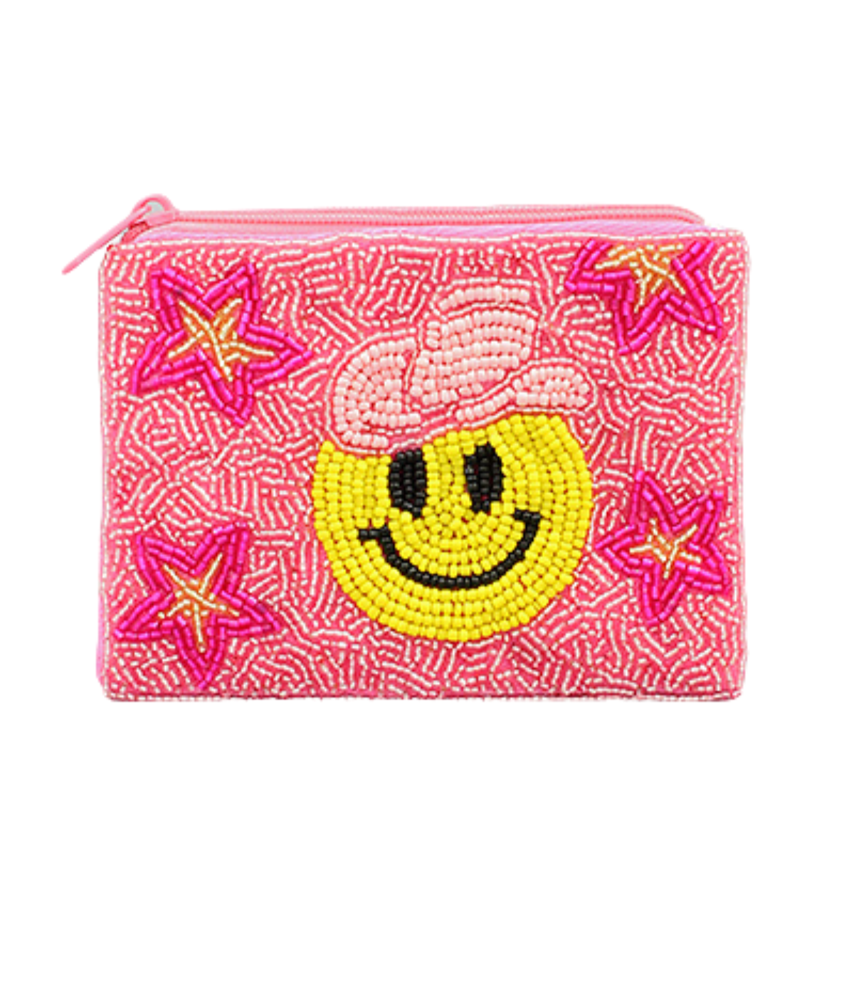 Cowbody Smile Face Beaded Coin Pouch - Pink