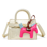 Elevate your child's style with our kids crocodile pony handbag featuring a chic crocodile textured print. This adorable accessory comes with a top handle and matching shoulder strap, providing versatile carrying options.
