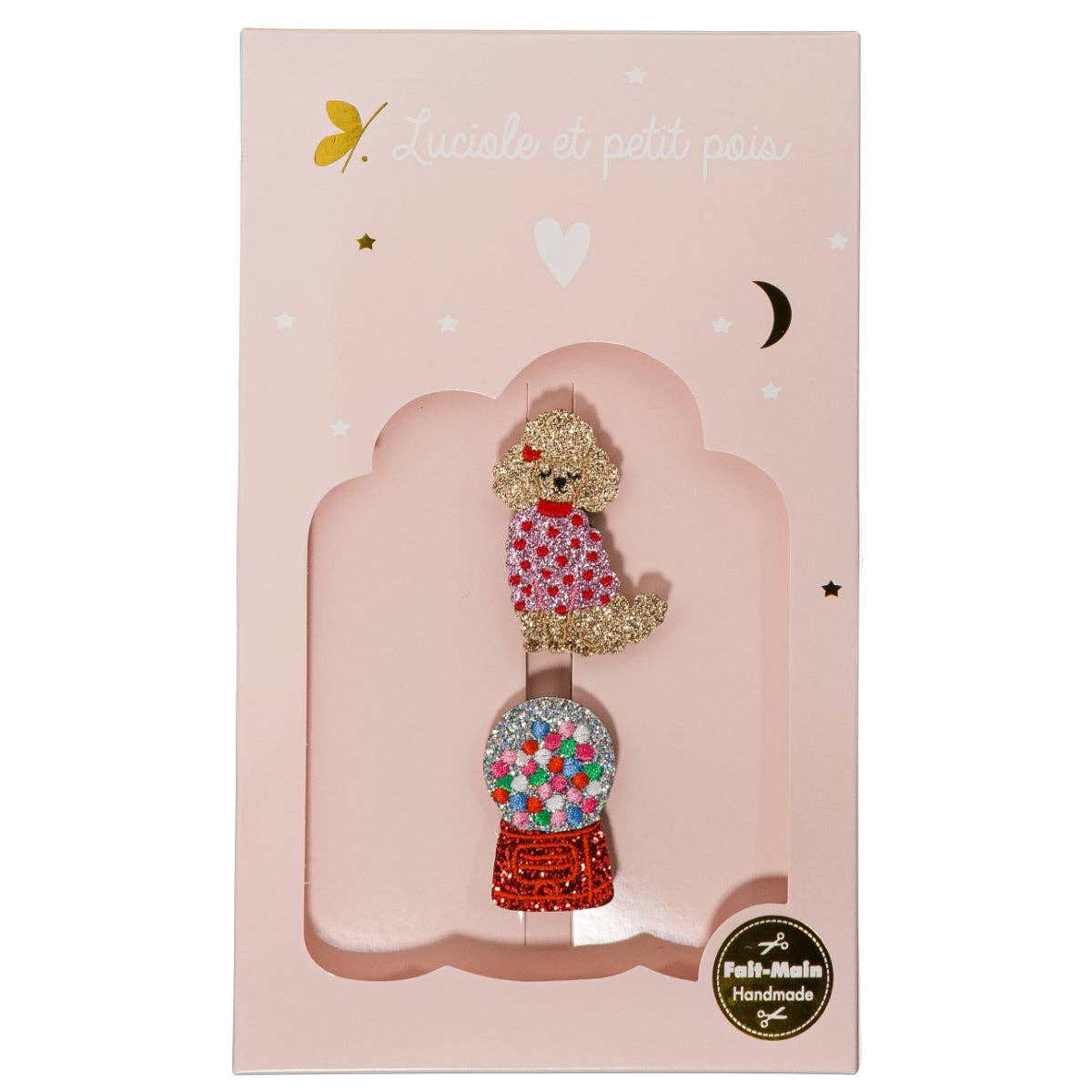 The Darling box set lives up to its name! A little poodle with a retro look and an ultra-pop bubble gum brooch: the perfect duo for mini fashionistas. Clip it onto a coat, bag, or sweater for a dose of style and good cheer.
