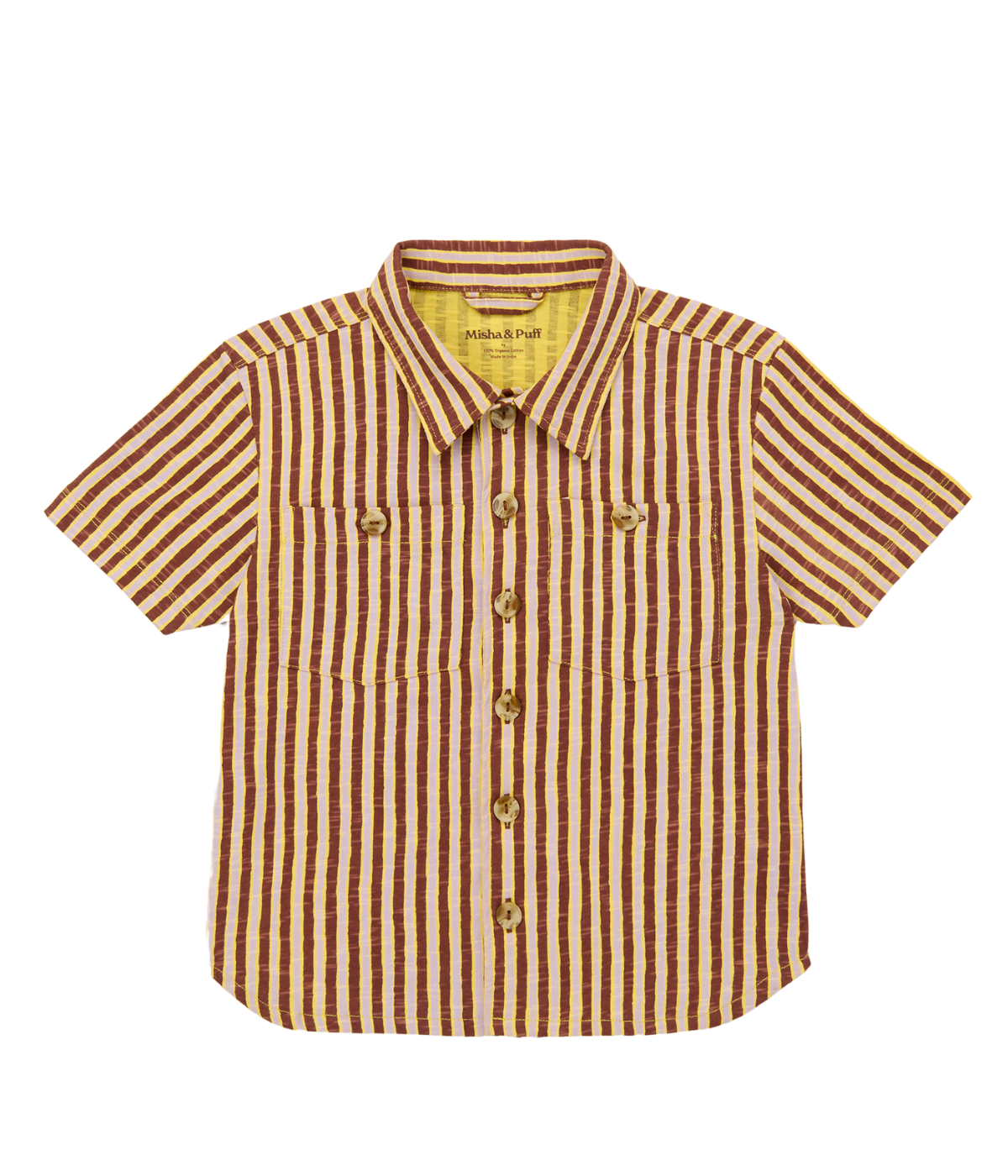 A vintage-style short-sleeve shirt jacket in organic cotton club jersey, with a straight body, point collar, front patch pockets, rounded hem, contrast stitching, and horn button closure. This slub jersey is slightly thicker than our Pima cotton styles, with a touch of structure.