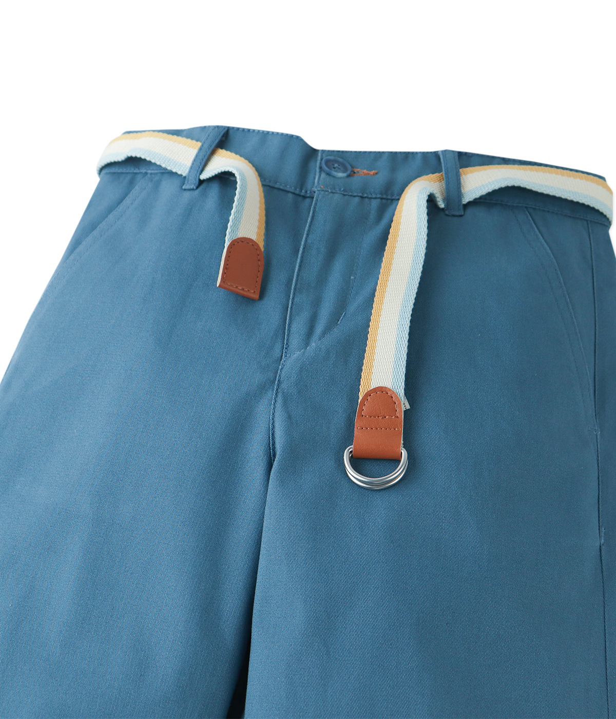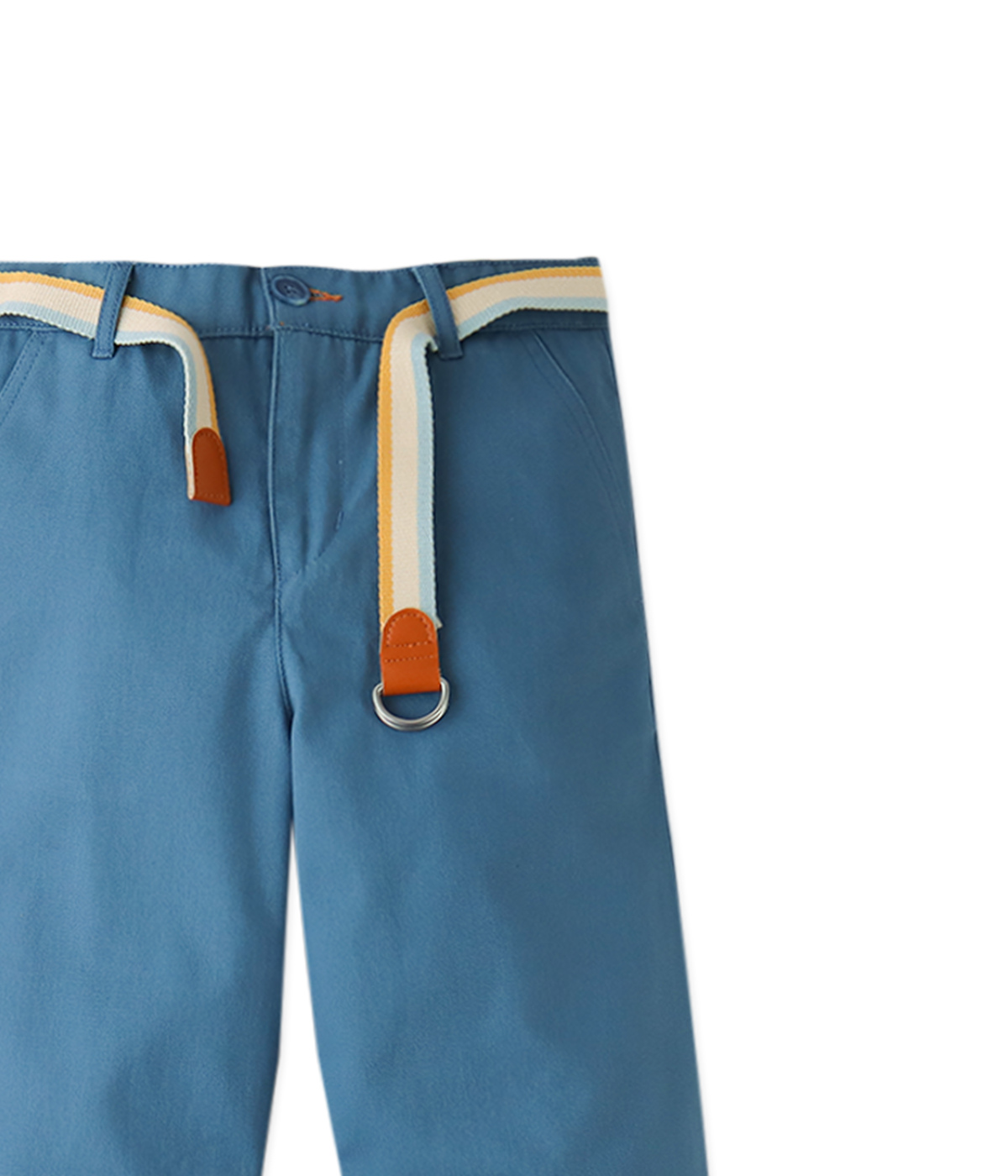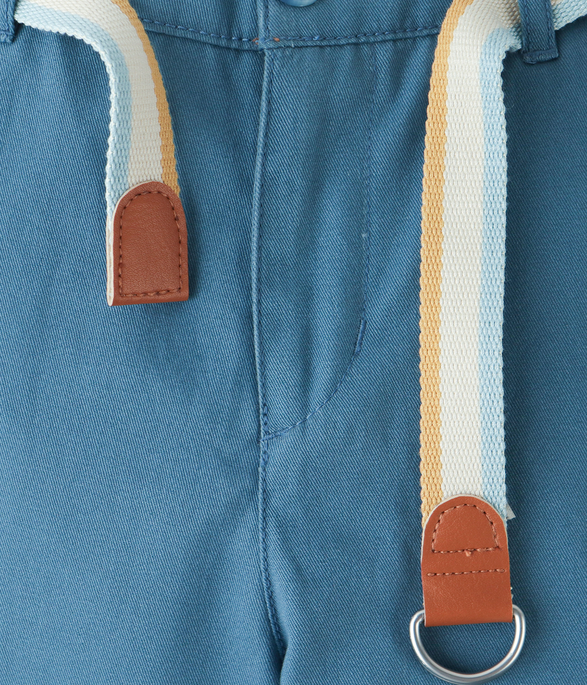 Boy Edward Regular Straight Twill Pants With Striped Canvas Belt - Blue