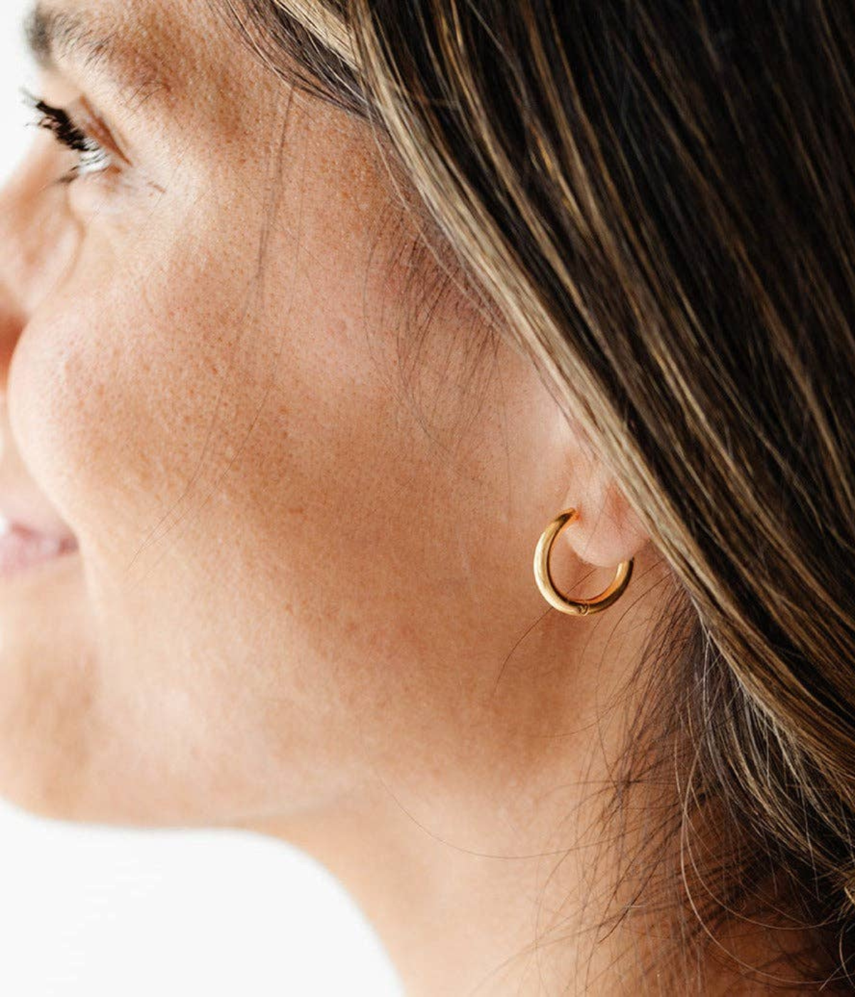 Discover our new Endless Hoop, available in 8mm. This minimal classic earrings are 14k gold & high quality surgical grade stainless steel, making them both hypoallergenic and comfortable for all-day wear. You can enjoy the freedom to run, shower, sleep, play, create, and travel without having to take them out. Our lightweight and dainty hoops are meant to be lived in! So why wait? Embrace the endless style with our Endless Hoops and experience the perfect blend of style and quality!