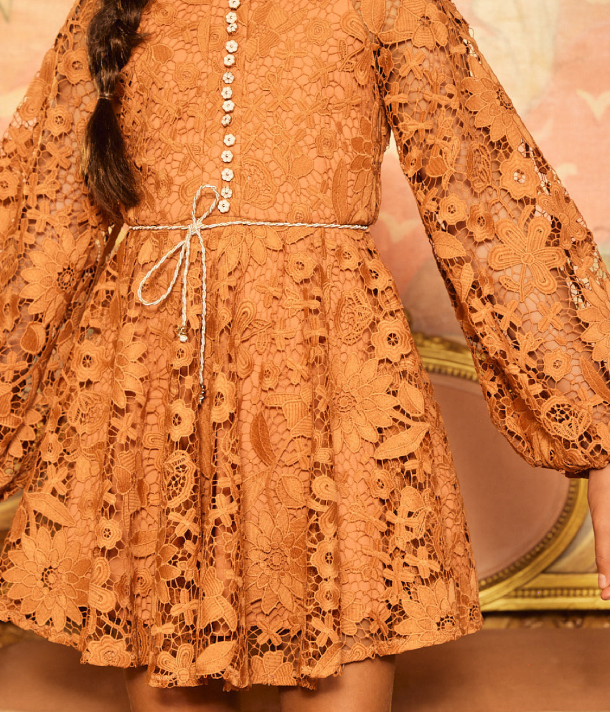 Esme Embroidered Sleeve Mini Dress - Cinnamon