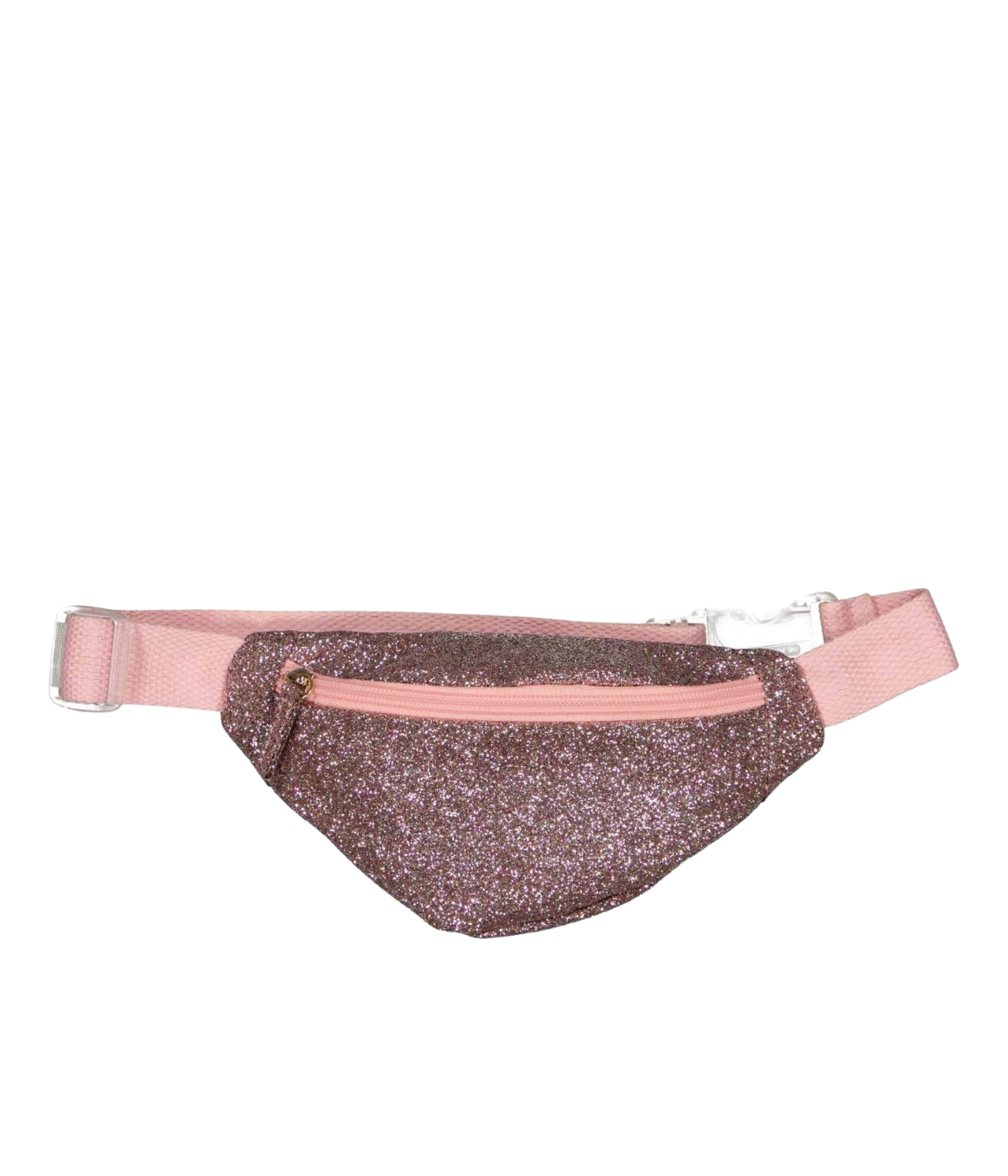 Very trendy, this fanny pack brings a glam touch with its pink glitter fabric, perfect for twisting up smart outfits and storing your little treasures!