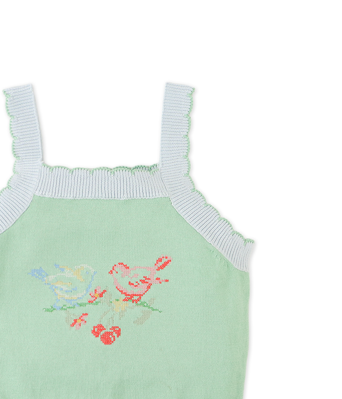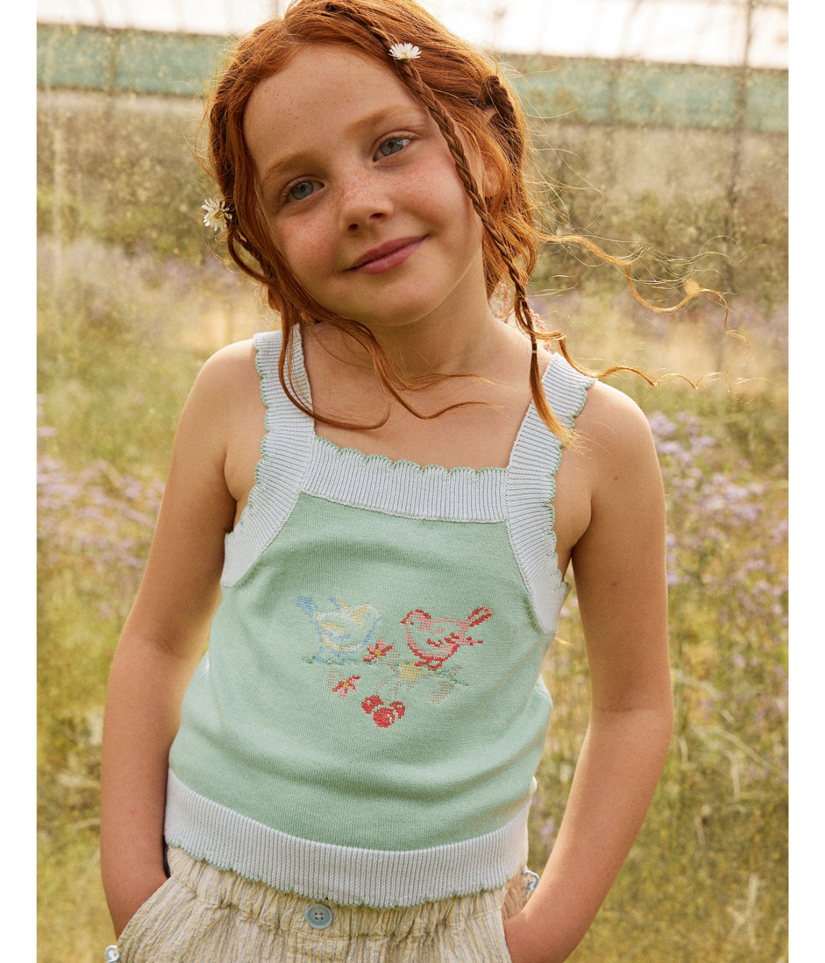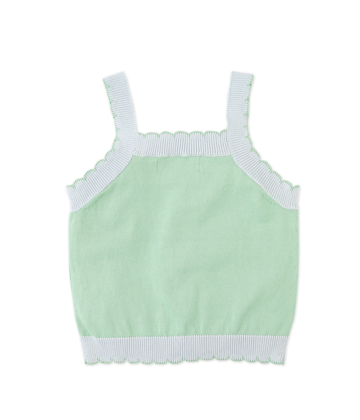 Girl Gabriella Top With Cross-Stitch Embroidery & Scalloped Edges - Green