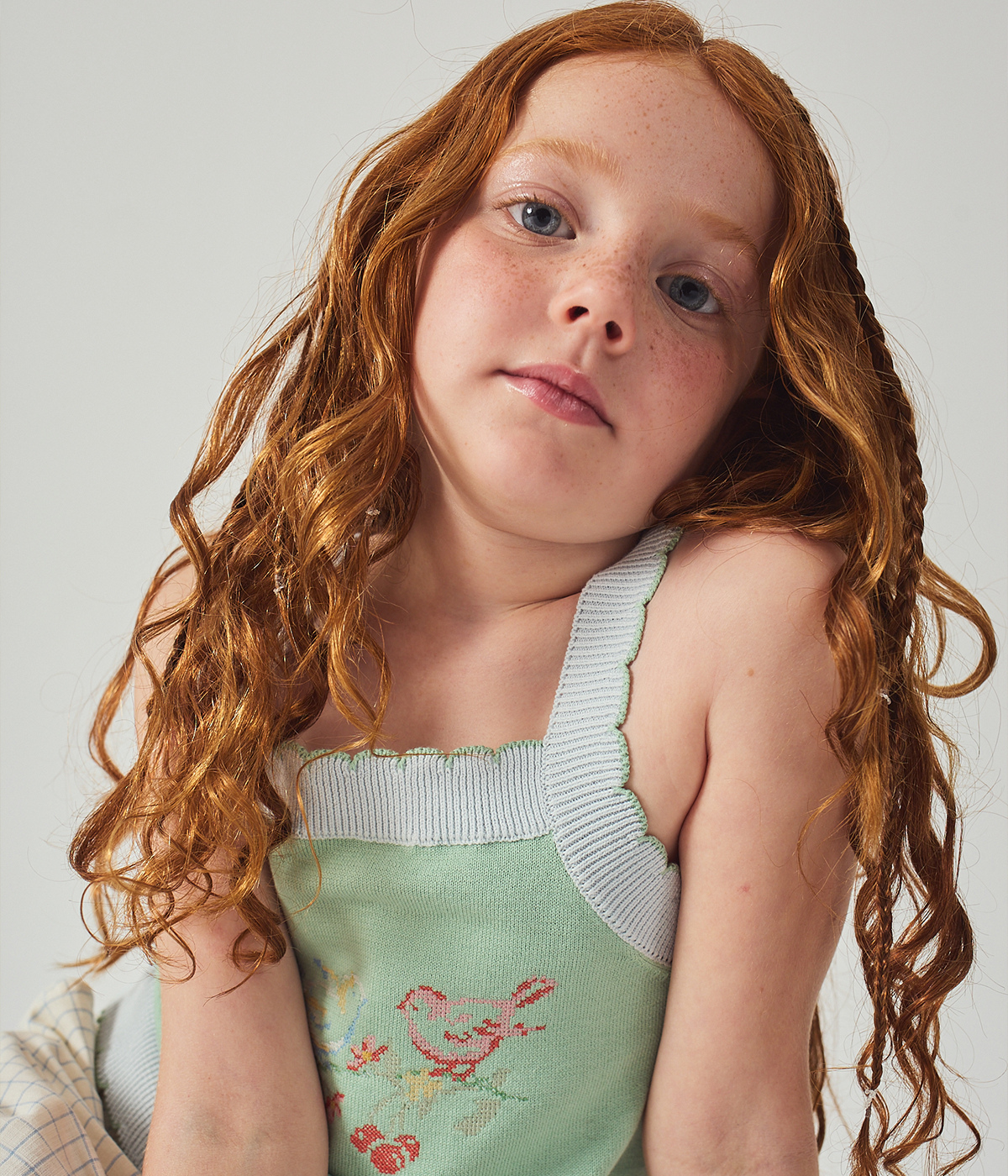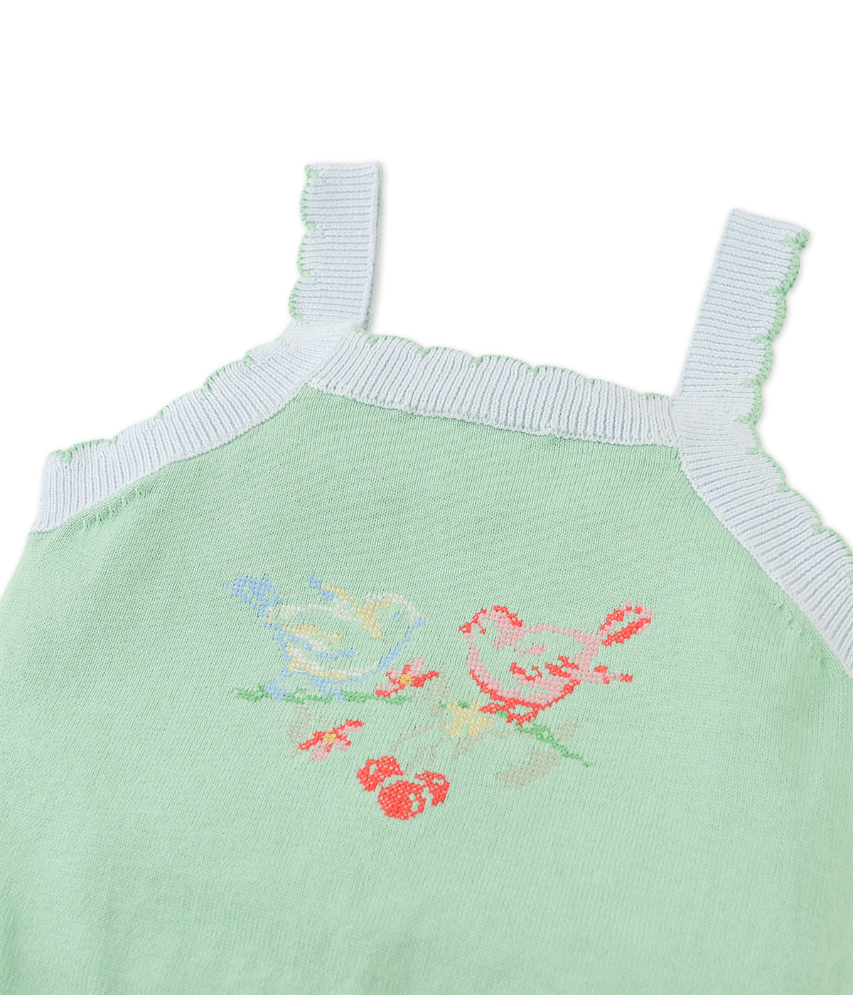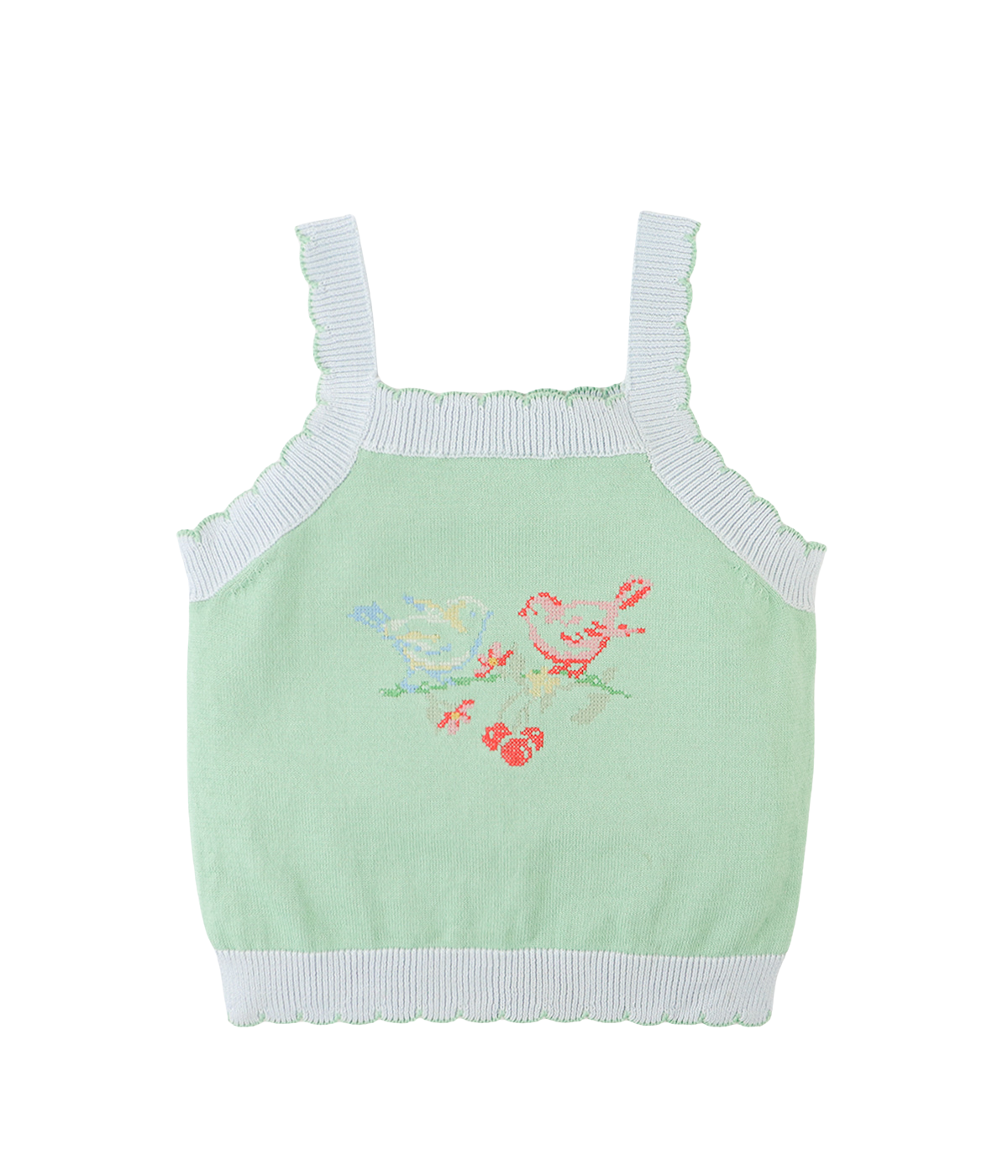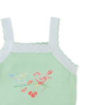 Girl Gabriella Top With Cross-Stitch Embroidery & Scalloped Edges - Green