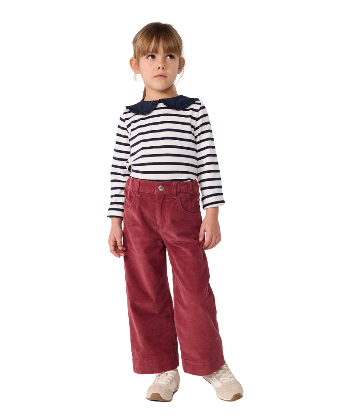 Crafted from soft, durable corduroy, these burgundy pants offer both comfort and style for your little girl. Their rich color and cozy texture make them a versatile wardrobe essential, perfect for everyday wear or special outings. Choose these pants to keep her looking effortlessly chic while enjoying all-day comfort.