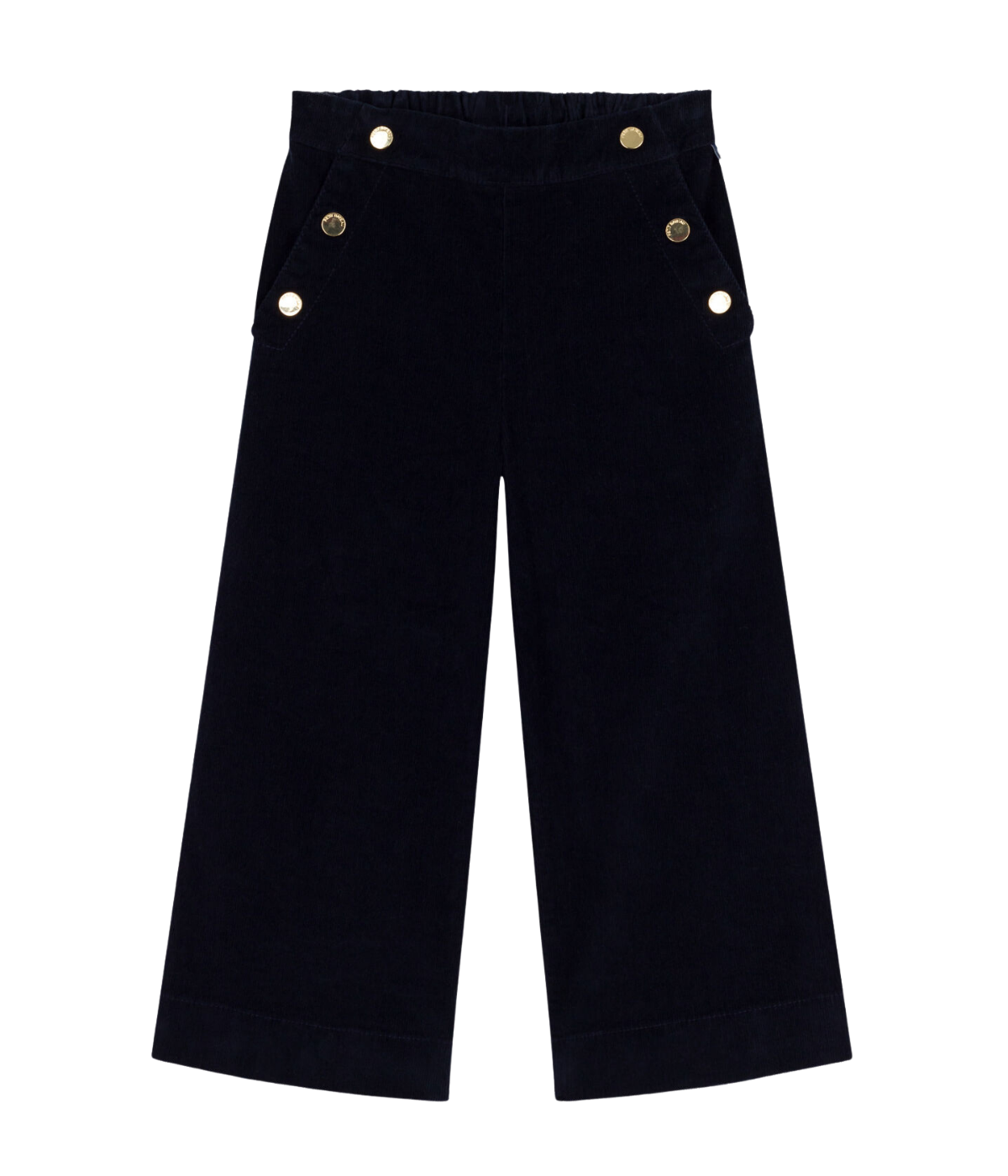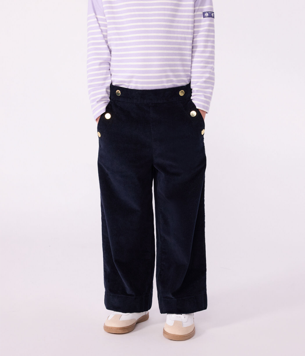 Girls' corduroy sailor-style trousers, comfortable, on-trend, and ideal for winter.