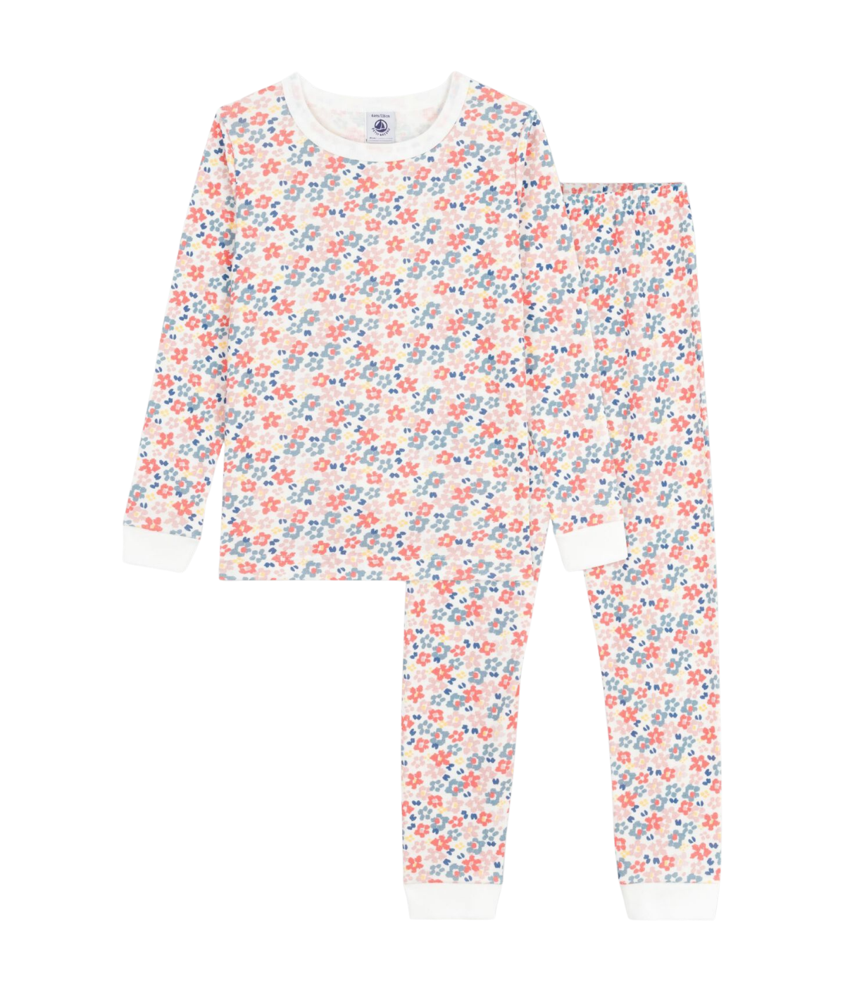 - Pyjamas in 1x1 rib knit with a floral print to add a touch of fantasy and femininity!