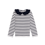 Girl LS Stripe Top With Collar - White Navy