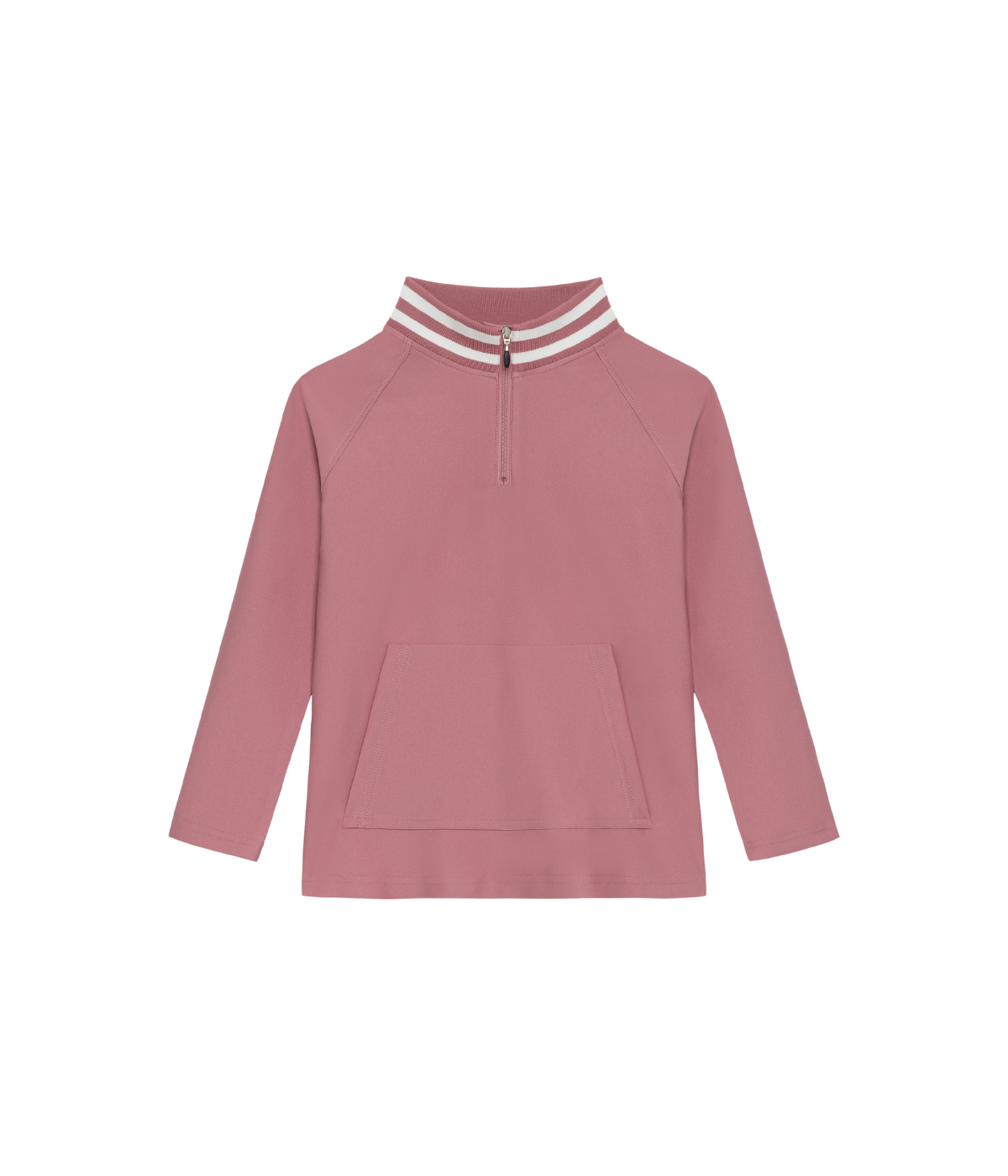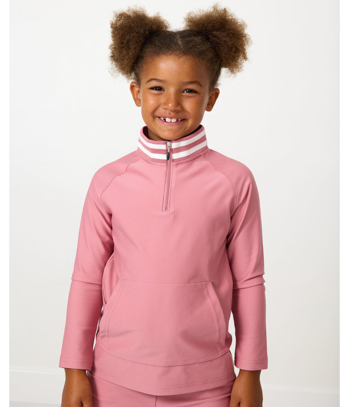 For the girl who loves to play! our half-zip for girls comes with a pocket for hands or treasures. the white detail elevates the design, making it the perfect item to go from sports to school and everything in between.