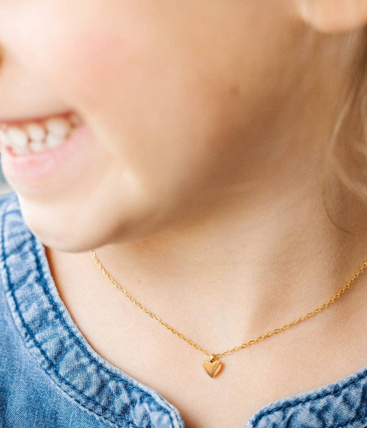 Dress up daily with our Gold Pendant Necklace with Heart Charm. This cute delicate necklace features a dainty gold pendant adorned with a Heart, designed to add a classic touch to an every day. This necklace is a timeless keepsake, we guarantee she will love. Each necklace comes in a gift box. You may also like our Heart Earring.