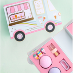I scream, you scream, we all scream for ice cream! This set features two sugar and vanilla cream scented bath balms, lip gloss, hair clips, and a fun hair tie! Ingredients - Sodium Bicarbonate, Citric Acid, Avocado Oil, Tea Tree Essential Oil, Sweet Orange Essential Oil, Fragrance, Coloreze. Surprise - Lip Gloss, Hair Tie, Hair Clip inside.