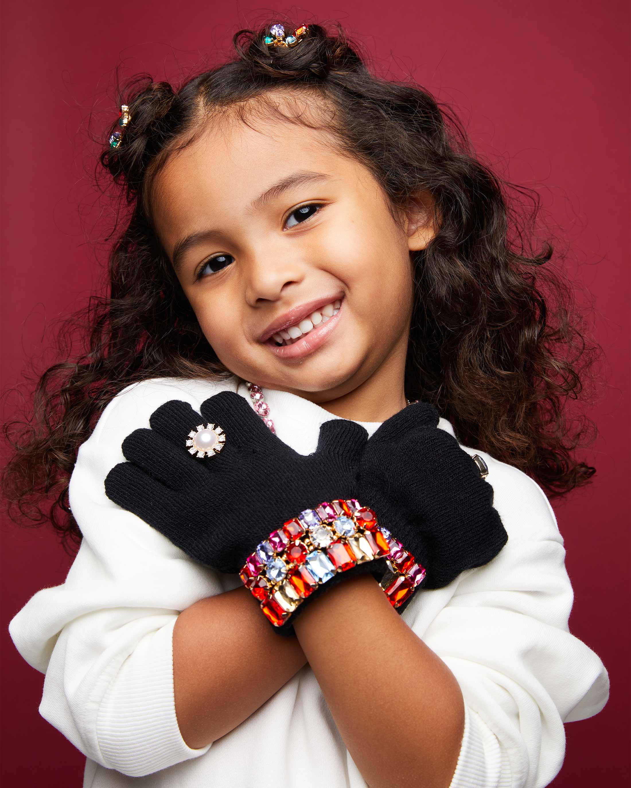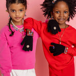 Time to keep those precious little hands covered! The coziest member of the Super Smalls crew is perfect for everything from ice skating outings, to walks to school, and sipping hot cocoa with pals. Embellished with colorful gemstones, now you can keep your fingers warm and your jewelry popping! Welcome to a winter sparkle-land.