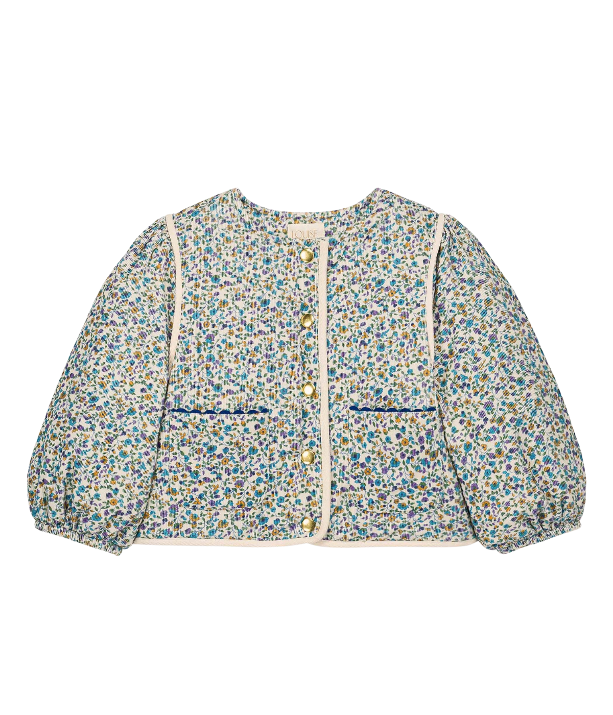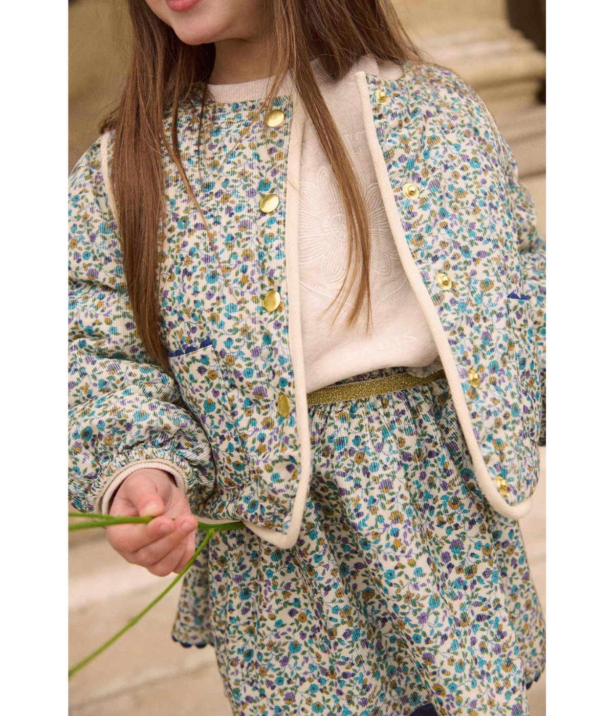 Embrace effortless style with the Jacket Jouliane in Velvet Cream Aster. Crafted in Paris by Marie Pidancet and her team, this floral corduroy quilted jacket features a chic oversized silhouette with puff sleeves and elastic cuffs for added comfort and flair.