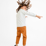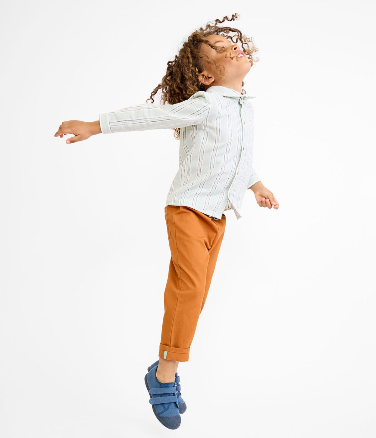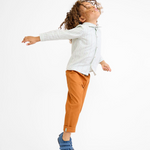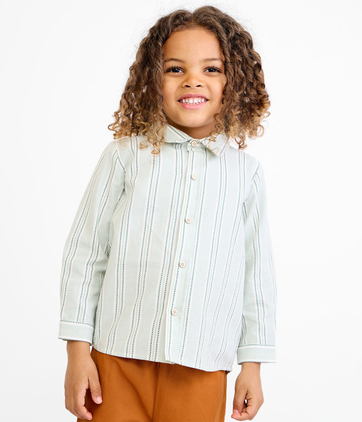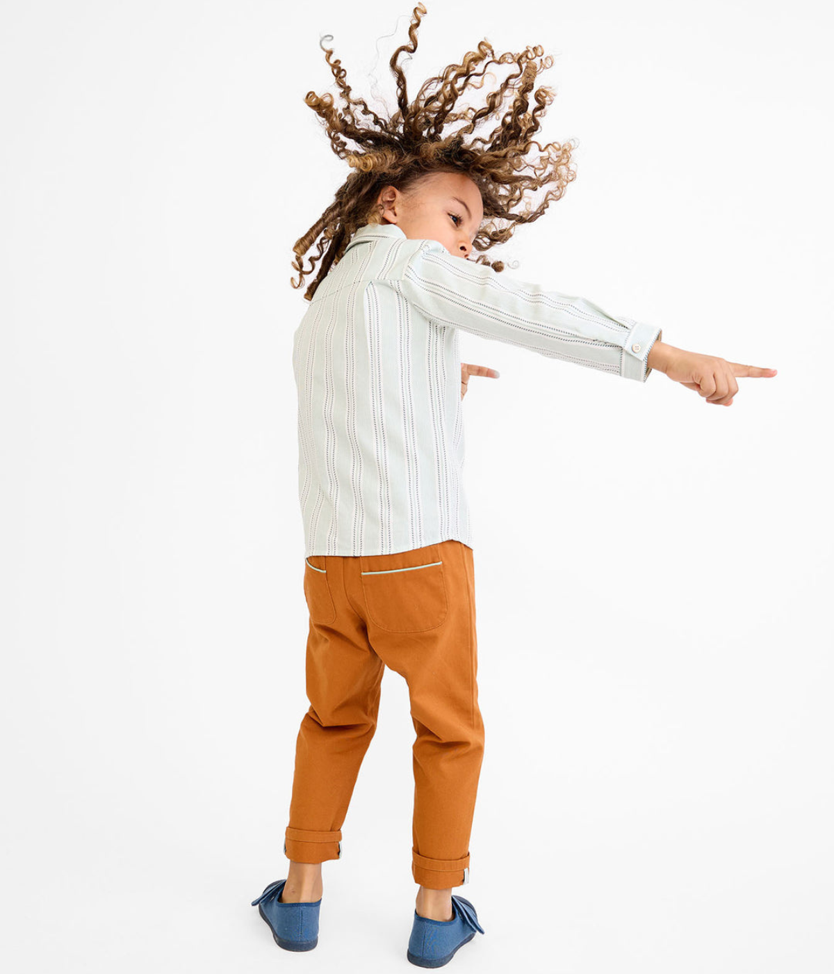 A casual button down shirt for boys or girls in the softest fabric you've ever touched. Our Jefferson shirt features shoulder room so that they can play with freedom, a flat shirt tail for an untucked and casual — or tucked in and put-together look, and our favorite detail of all: the sweetest rounded Peter Pan collar that’s perfectly nostalgic.