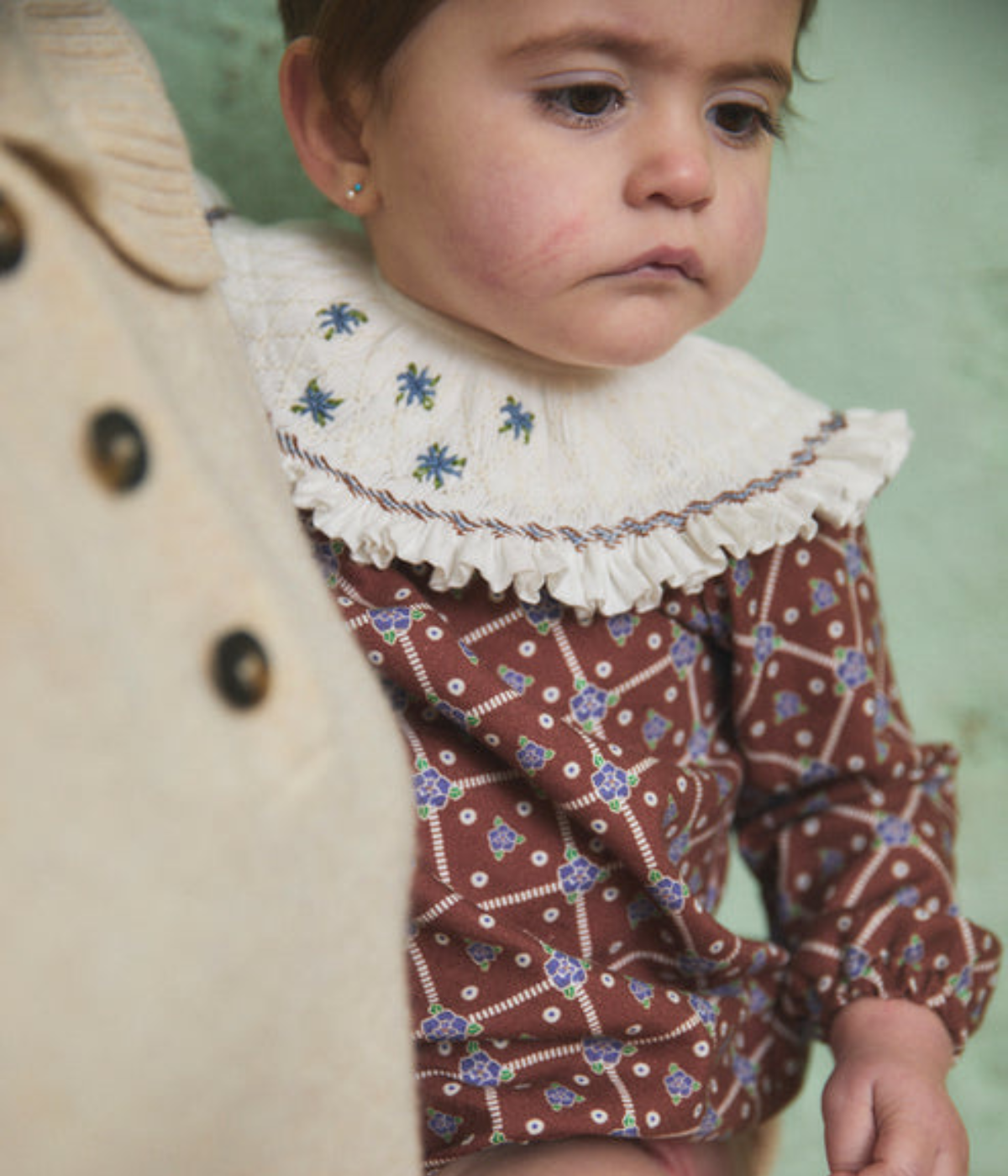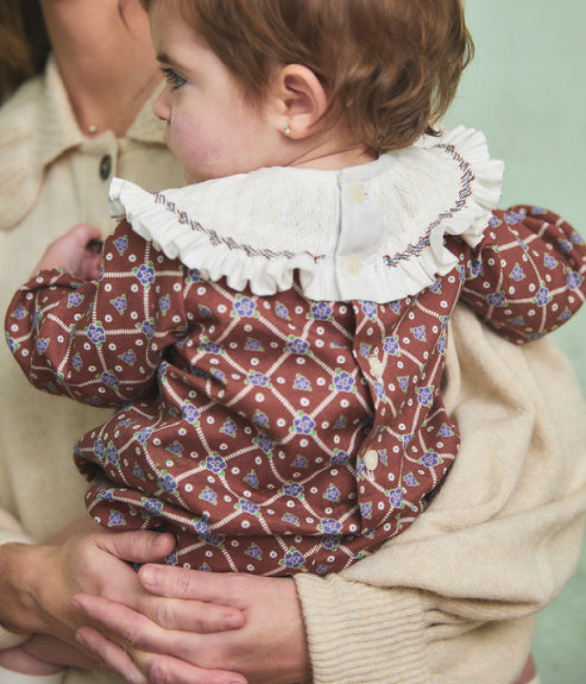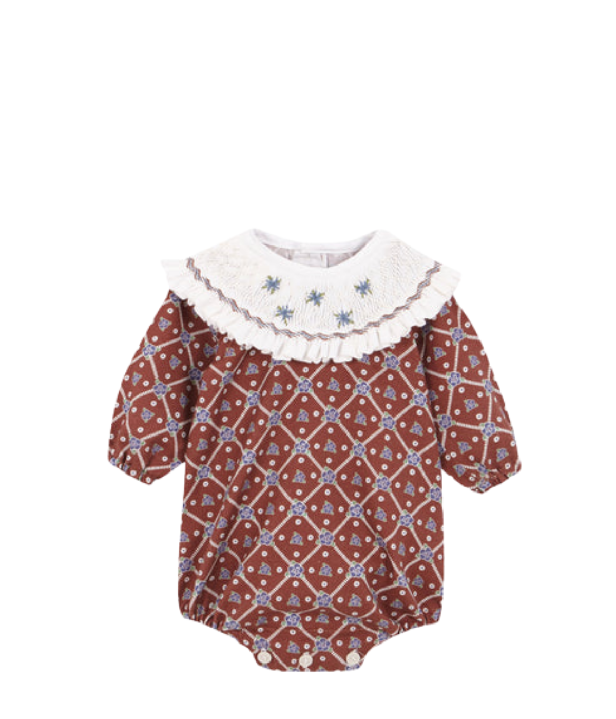Dress your little one in the Juliana Smocked Baby Romper, designed for both comfort and adorable style. Crafted with soft, breathable fabric, this romper ensures easy movement and all-day coziness. The charming smocked detailing adds a timeless touch, making it perfect for everyday wear or special occasions.