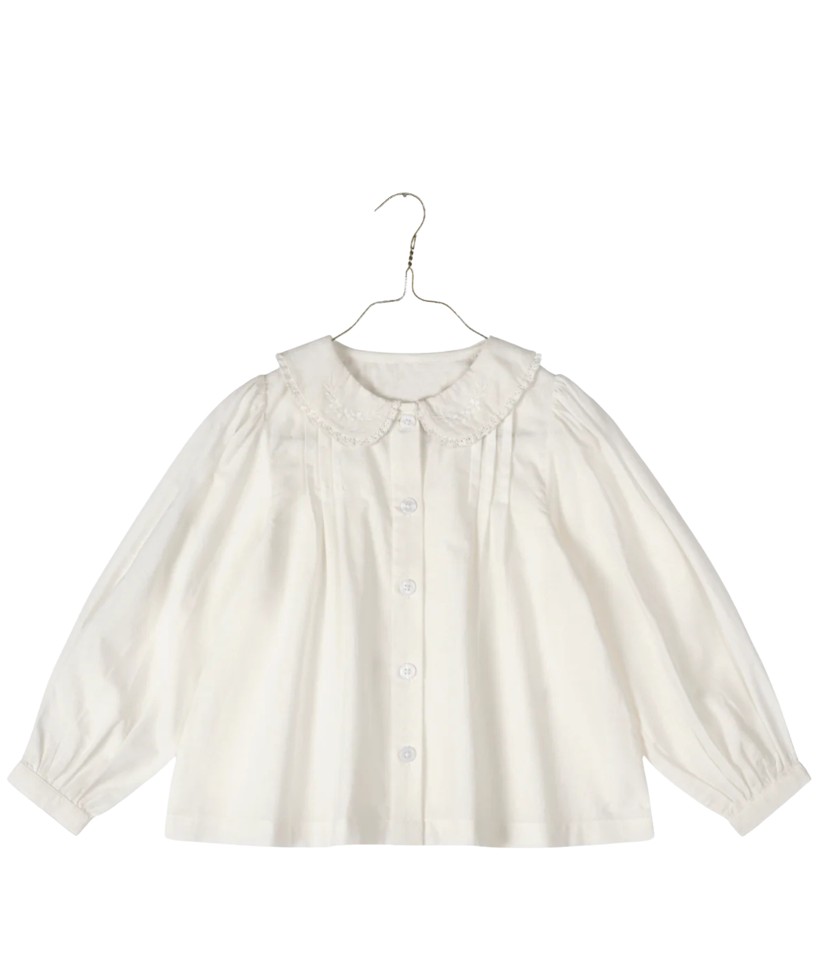 Transform your little one's wardrobe with Little Cotton Clothes' Ivy Blouse in a charming off-white hue. The voluminous long sleeves and peter pan collar add a playful touch, while the pleated detail and front buttons down provide both style and functionality. Perfect for your stylish girl kids!