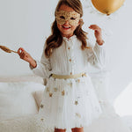 The pink sequin mask can easily be combined with our capes and magic wands to complete your costume. Here it is, ready to turn on the stars!