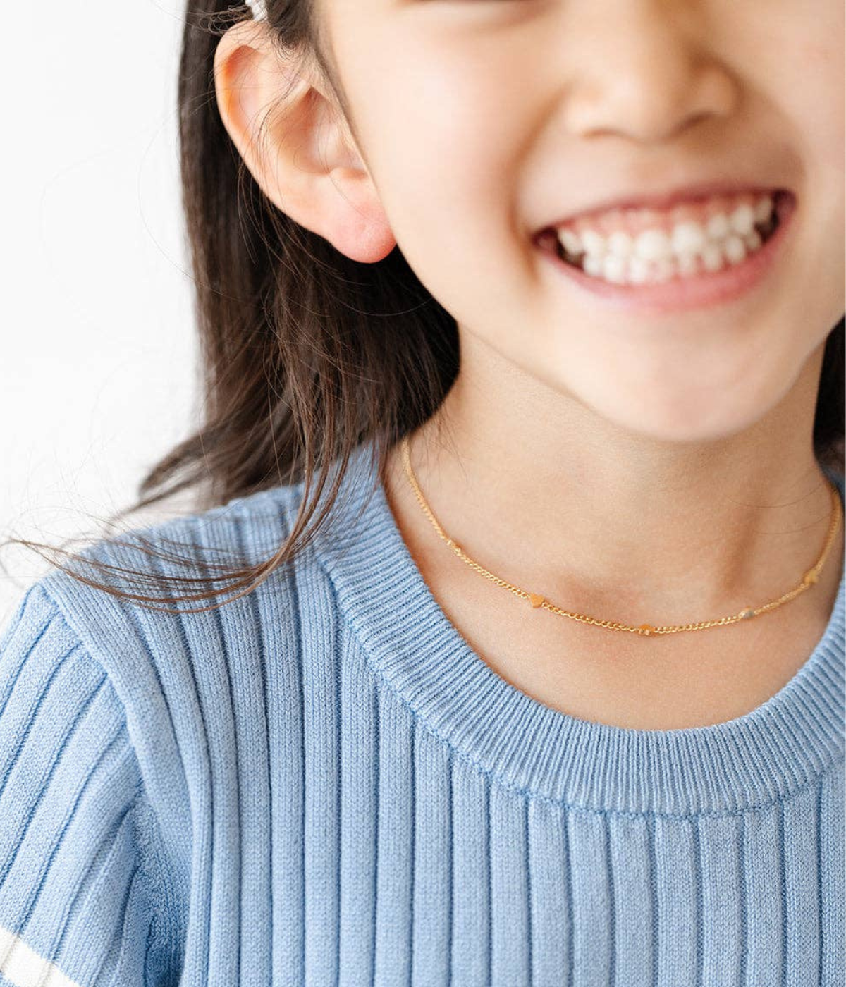 This cute delicate necklace features mini hearts, designed to add a sweet touch to an every day outfit. This necklace is a timeless keepsake, we guarantee she will love. Each necklace comes in a gift box.