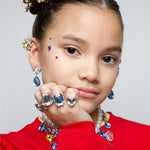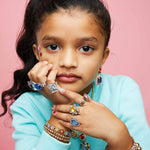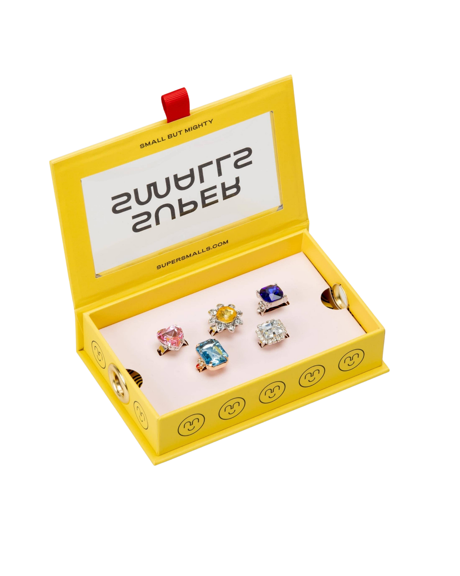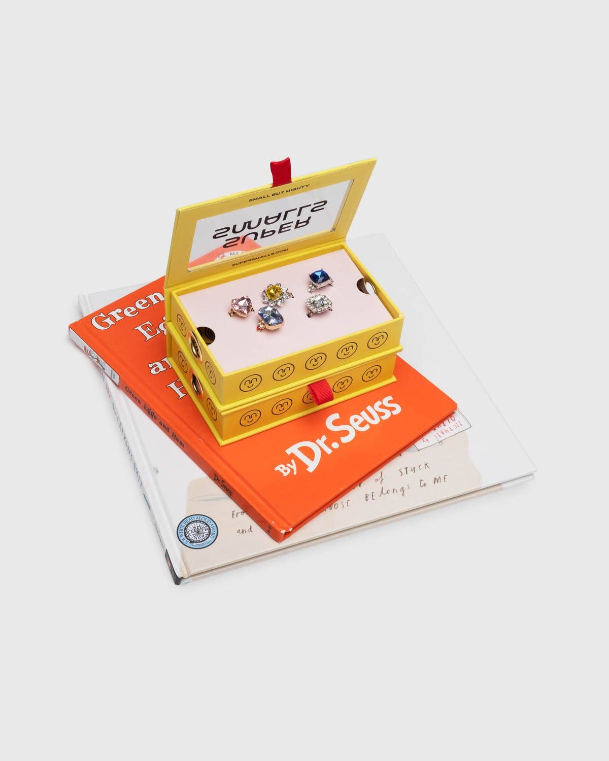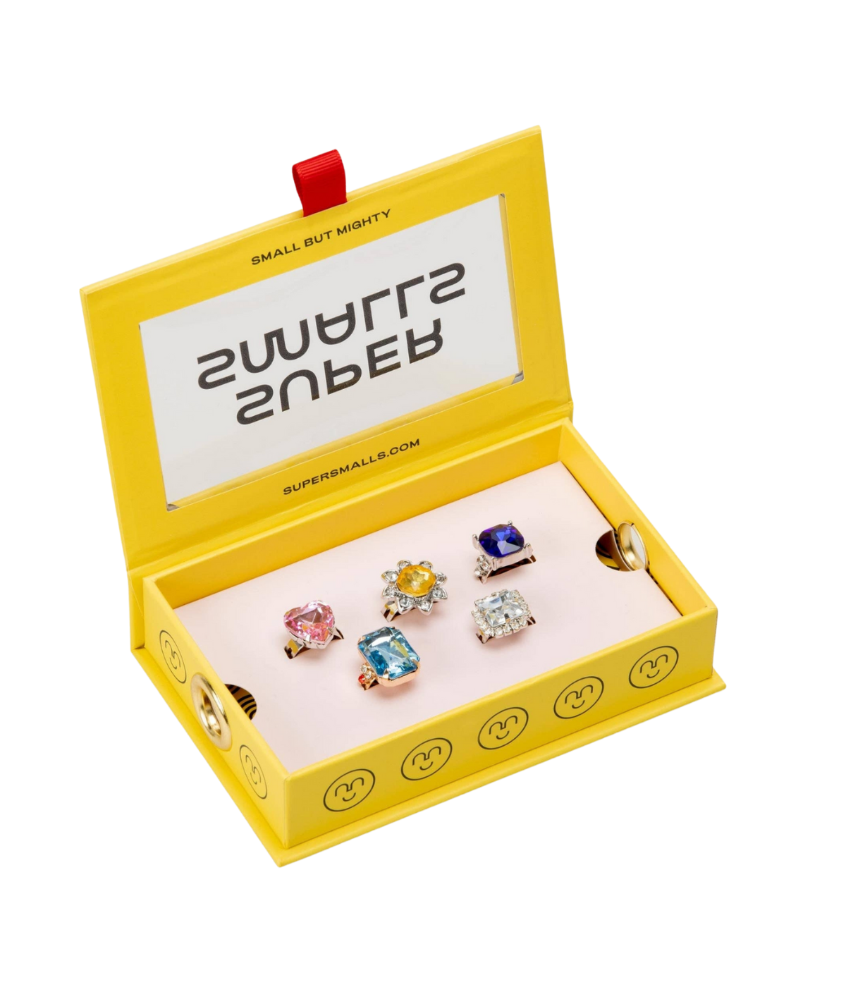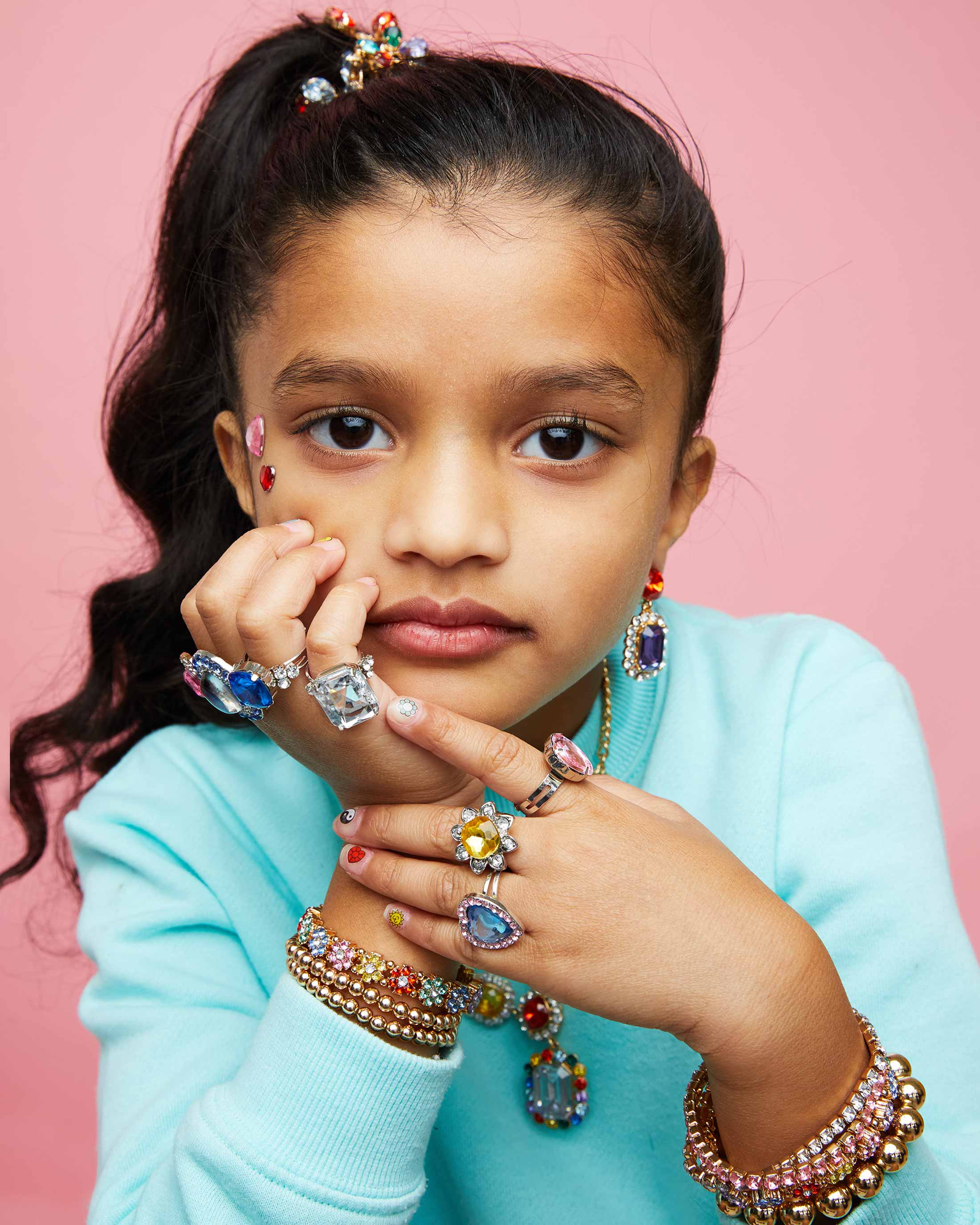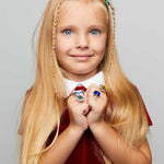Grab your pals, we’re power-lunching! Swanky, stylish, and super sparkly, these rings are sure to make a statement when clinking your glass of apple juice. The set includes five rings featuring colorful and oversized gemstones—perfect for decking out both hands and creating your signature stack… or (if you must), sharing the sparkle with the table and matching with friends.